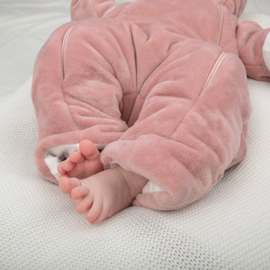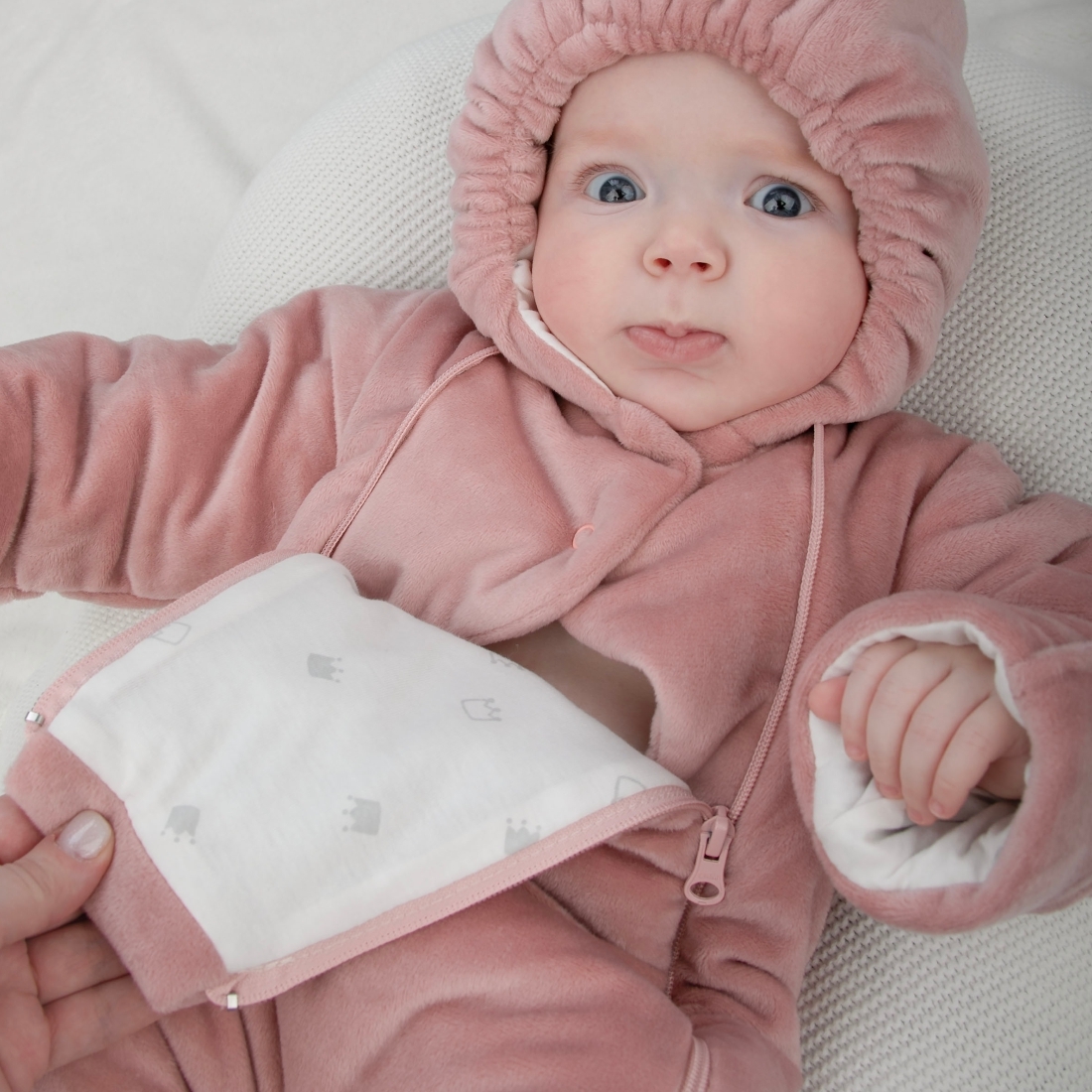 Отвороты на рукавах позволят спрятать ручки от ветра. Ножки закрыты
