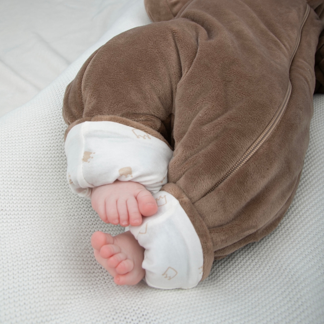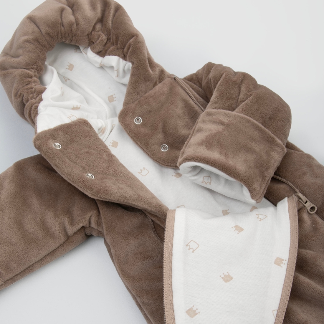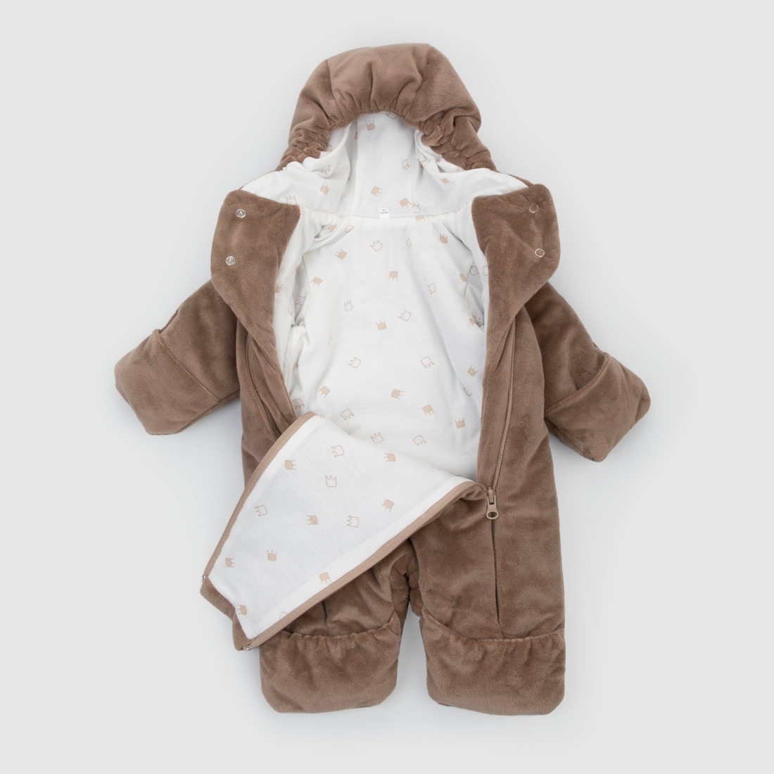 Отвороты на рукавах позволят спрятать ручки от ветра. Ножки закрыты