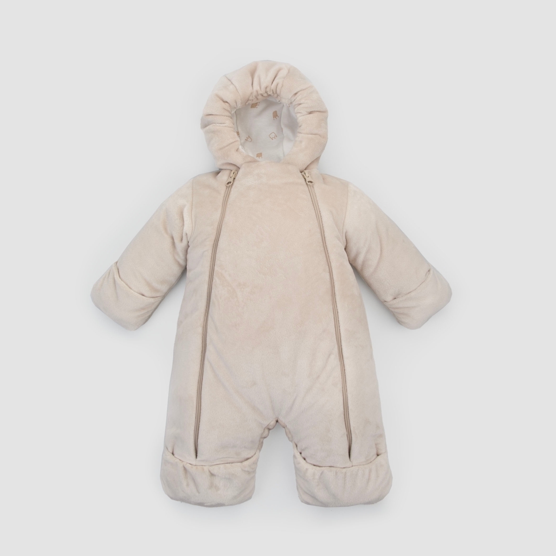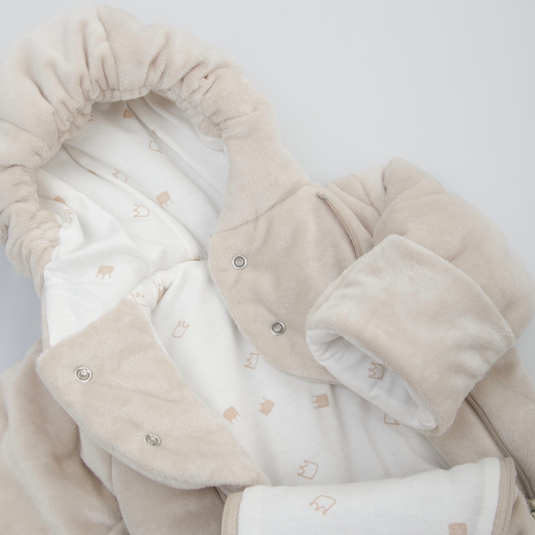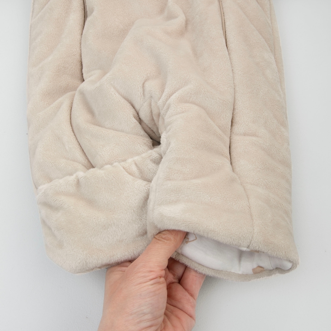 Отвороты на рукавах позволят спрятать ручки от ветра. Ножки закрыты