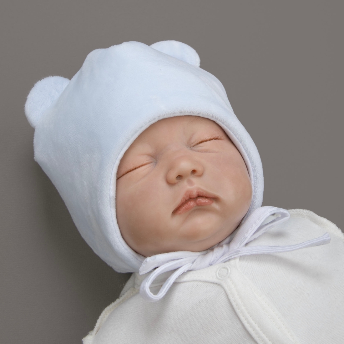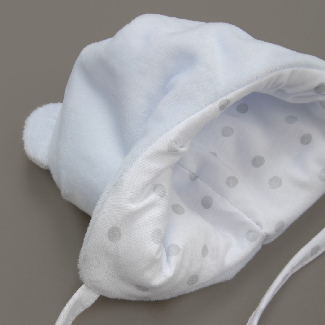 Мягкая, приятная на ощупь, теплая и удобная шапочка c ушками медвежонка на макушке.