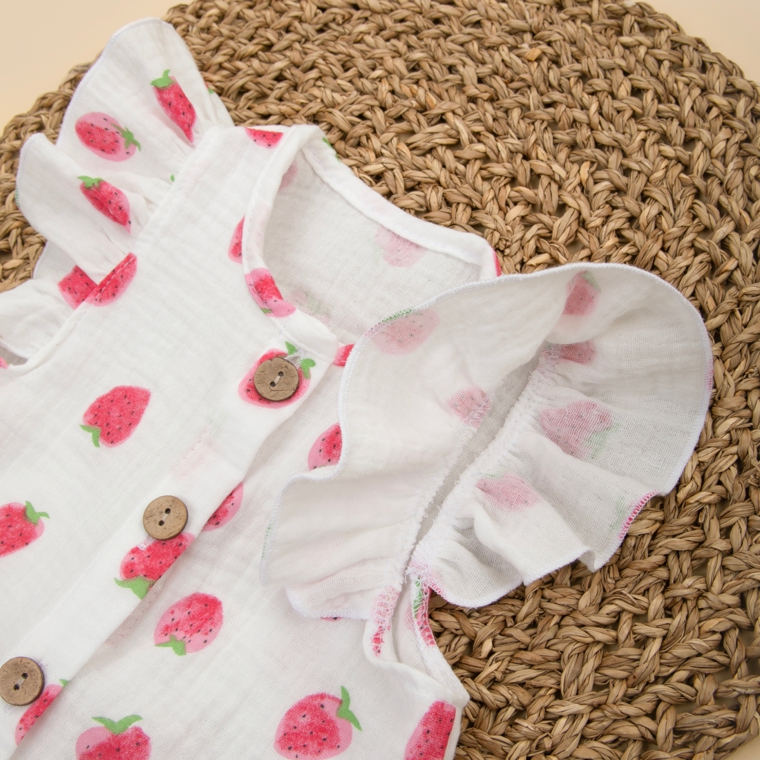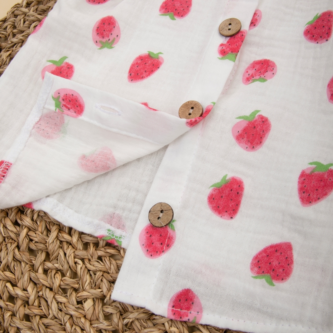 Свободный крой блузки не будет стеснять движений малышки. По передней половинке изделие застегивается на пуговицы.