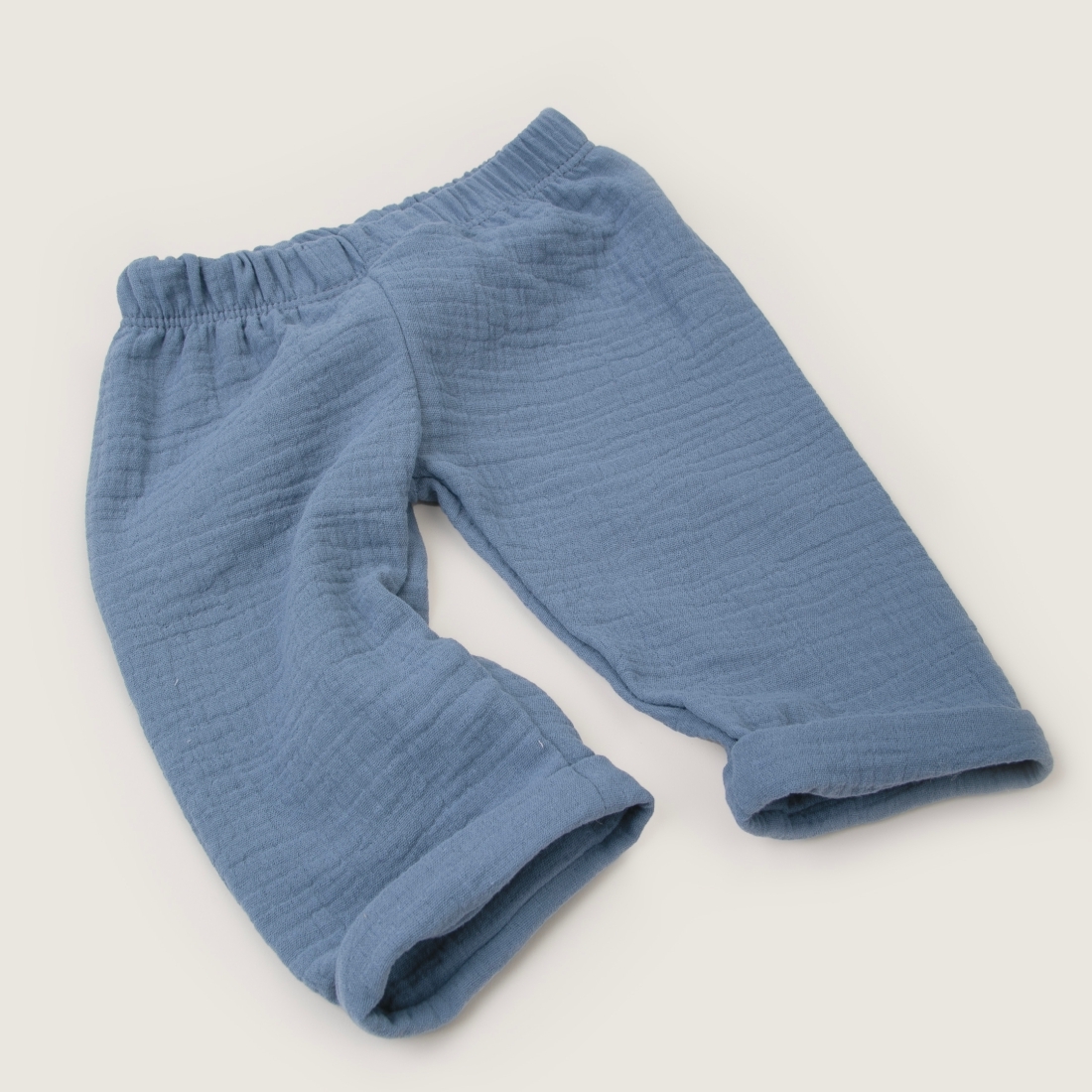 Брюки на резинке на поясе и с декоративными отворотами по низу штанин.
