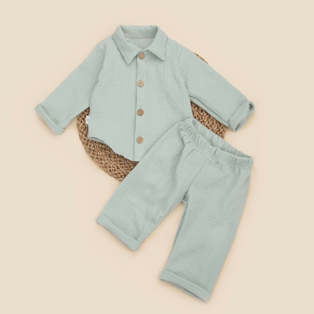 Комплект летний с длинным рукавом для мальчика "Муслин-2", полынь+полынь, лето