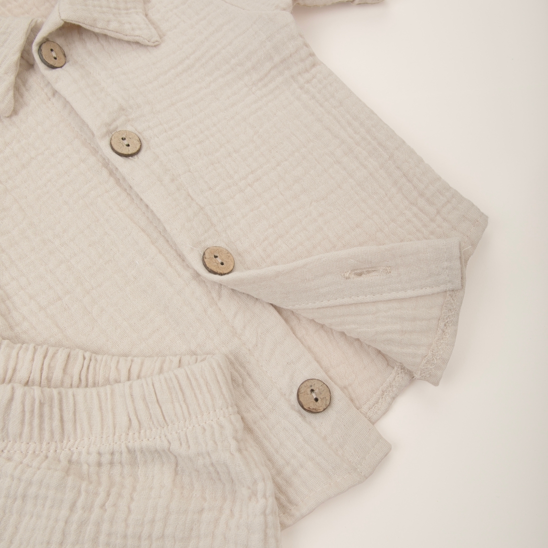 Рубашка с коротким рукавом и декоративными отворотами, по передней половинке декоративные пуговки