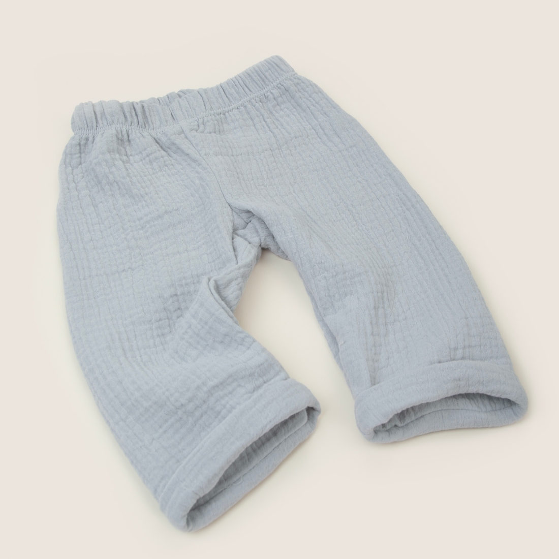 Брюки на резинке на поясе и с декоративными отворотами по низу штанин.