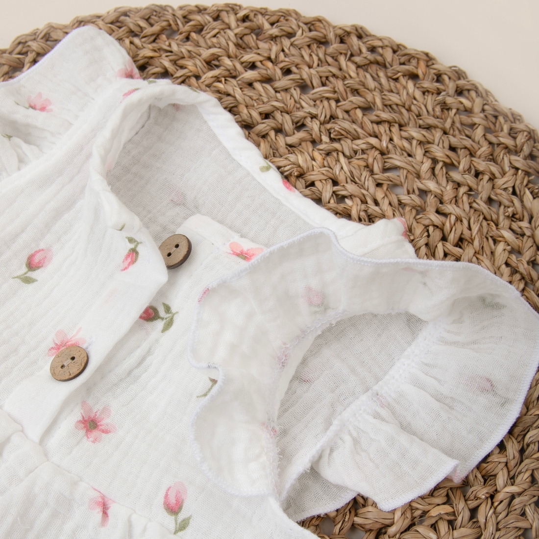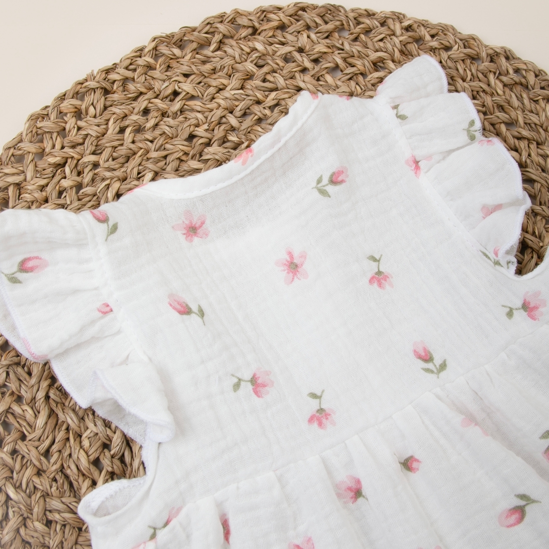 Летнее платье Муслин с крылышками вместо рукавов, застежка пуговицы на полочке, подходит для детского сада.