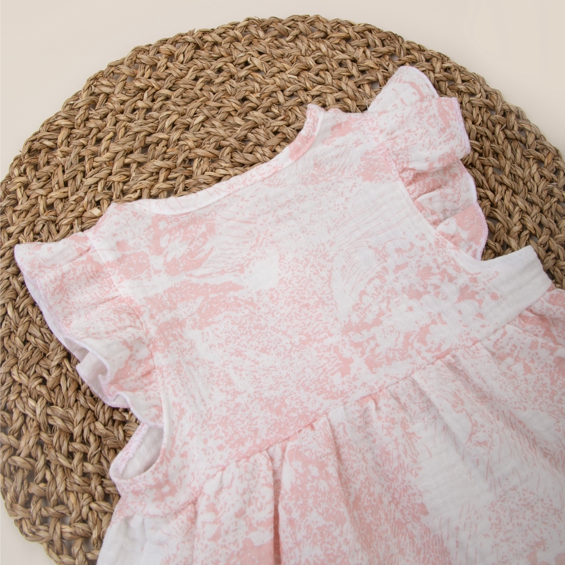 Летнее платье Муслин с крылышками вместо рукавов, застежка пуговицы на полочке, подходит для детского сада.