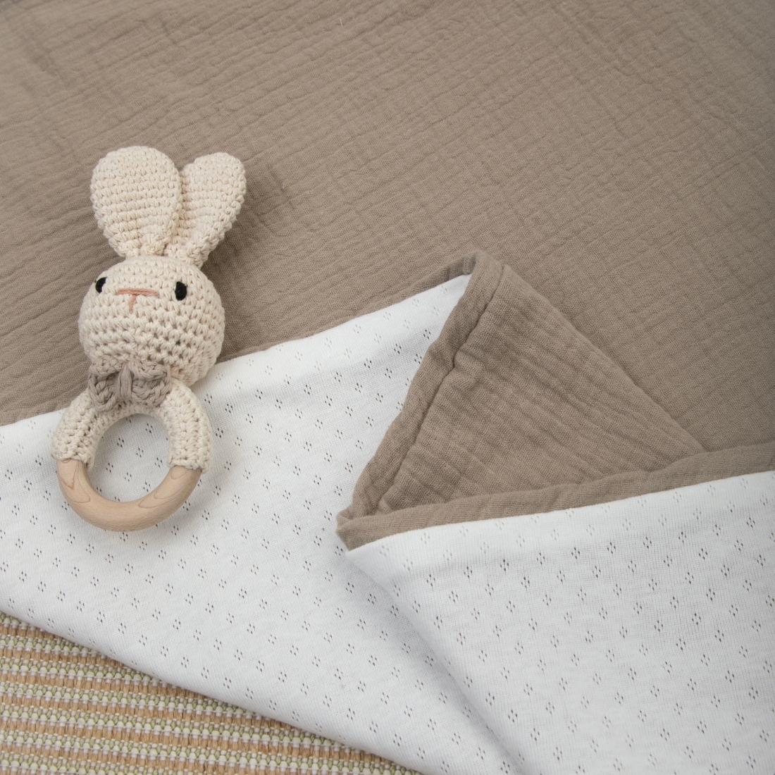 Состав одеяла: верх: муслин (хлопок 100%), подклад: рибана ажур (хлопок 100%)