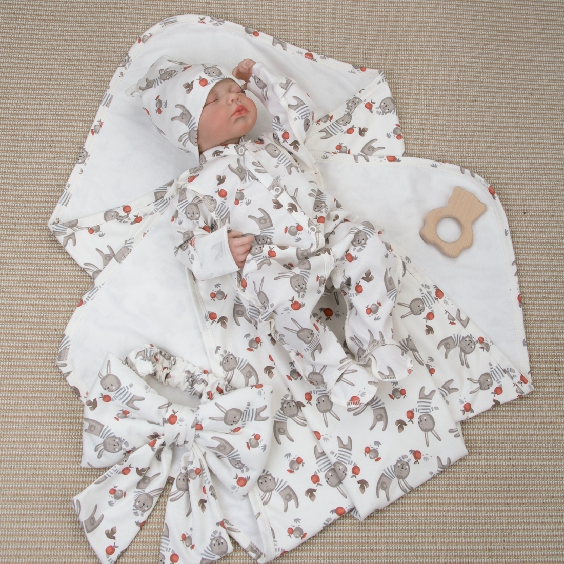 Универсальный комплект на выписку из 4 предметов - "Зайчики.Плед"