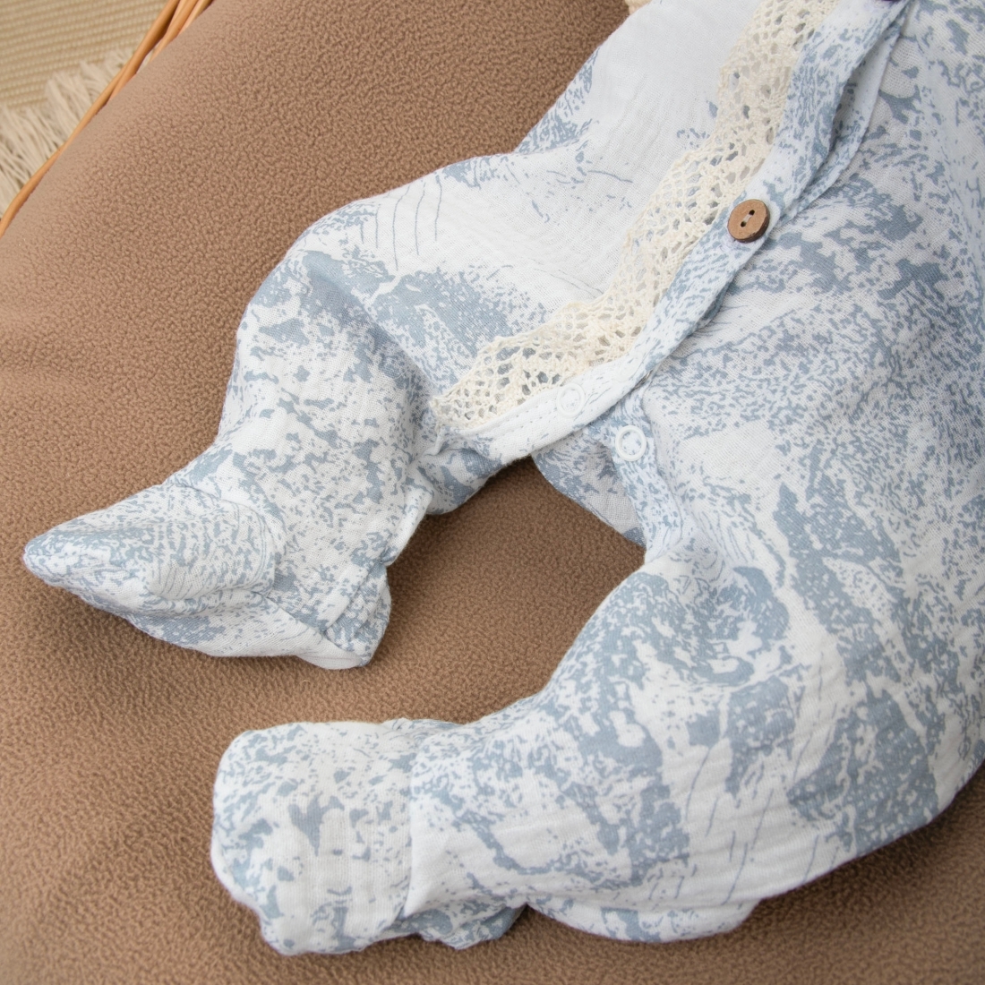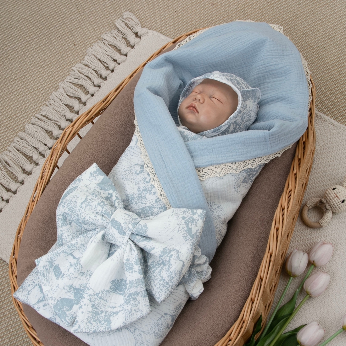 Комплект на выписку 4 предмета "Кружево.Муслин Плед", голубые облака, лето