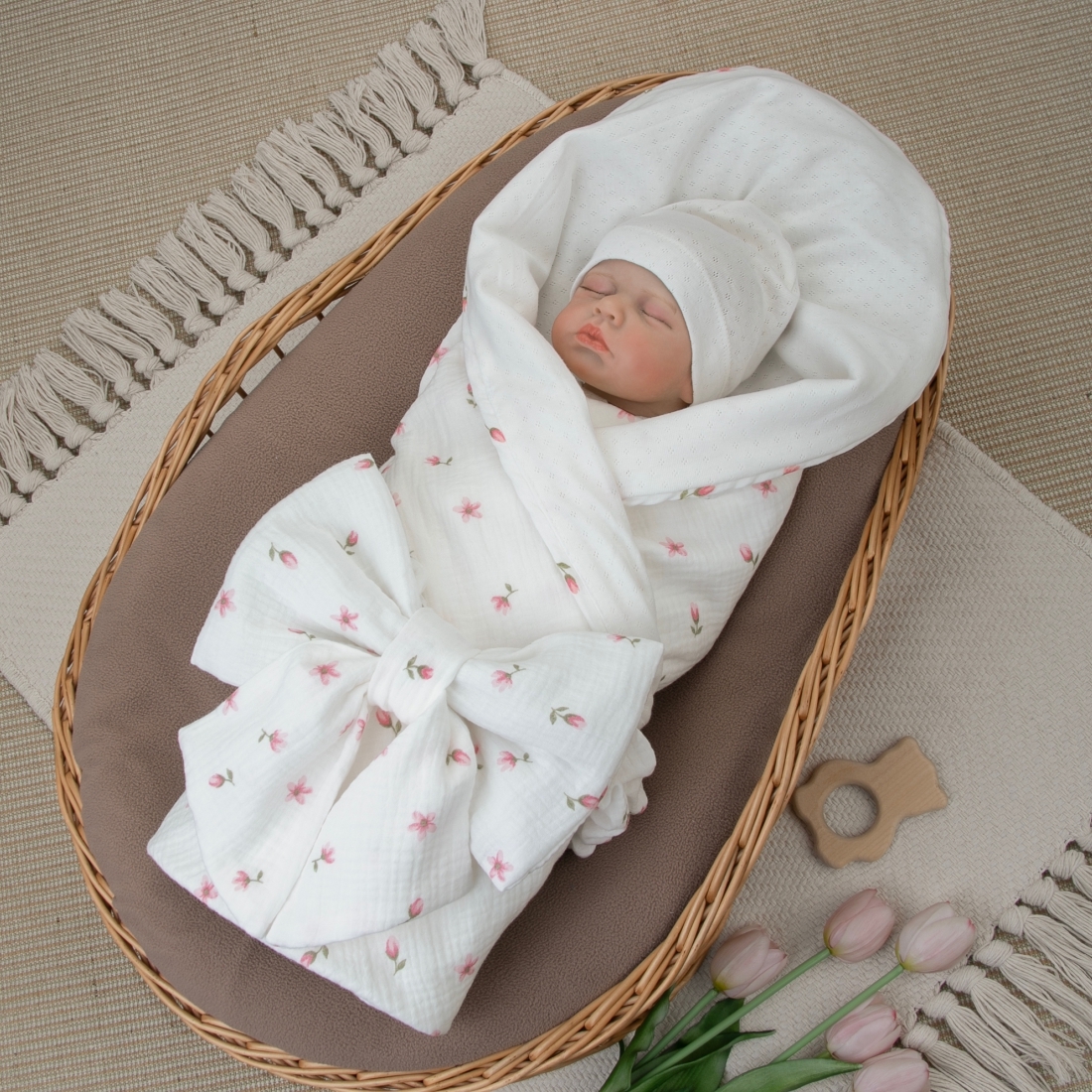 Состав одеяла: верх: муслин (хлопок 100%), подклад: рибана ажур (хлопок 100%)