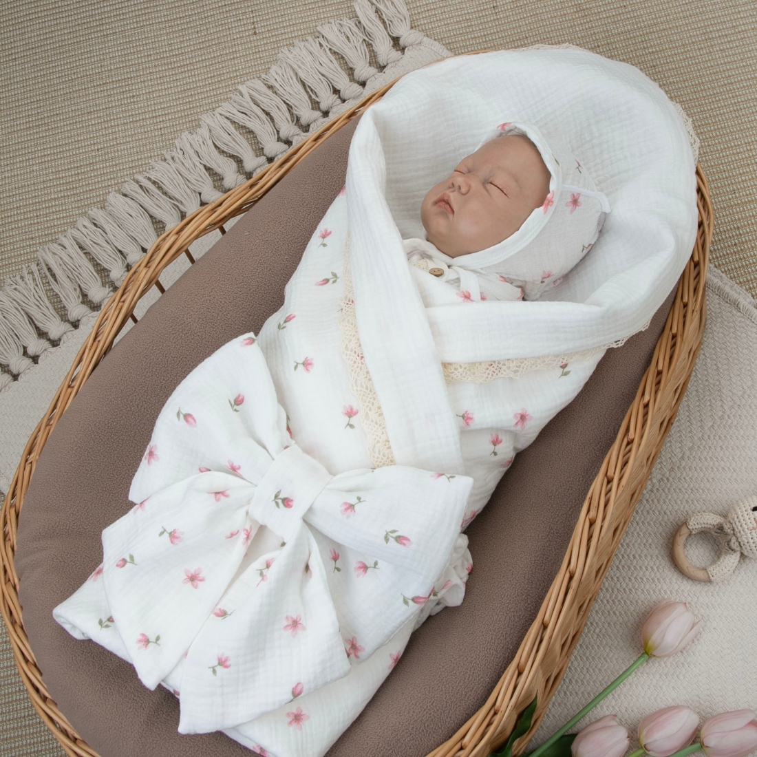 Комплект на выписку 4 предмета "Кружево.Муслин Плед".