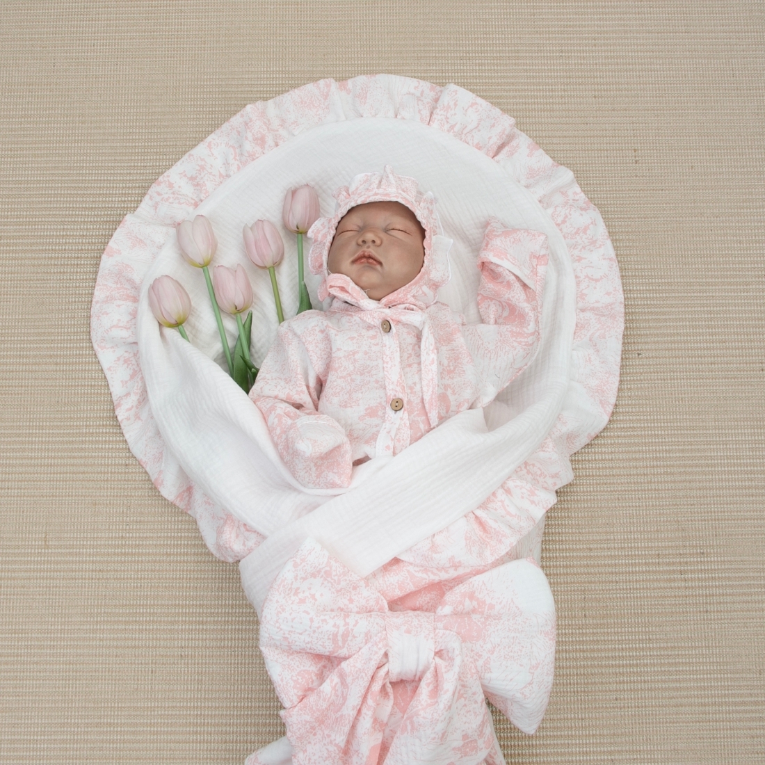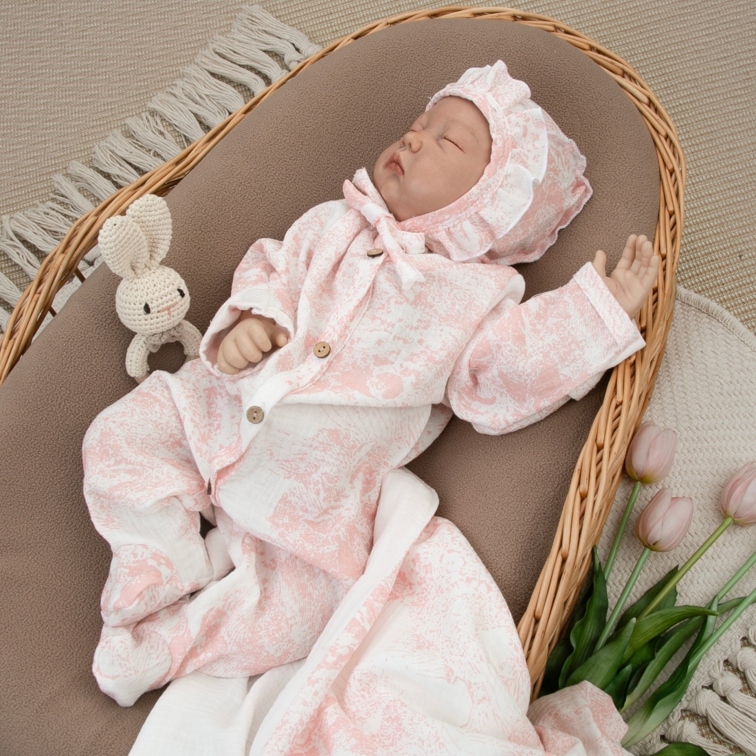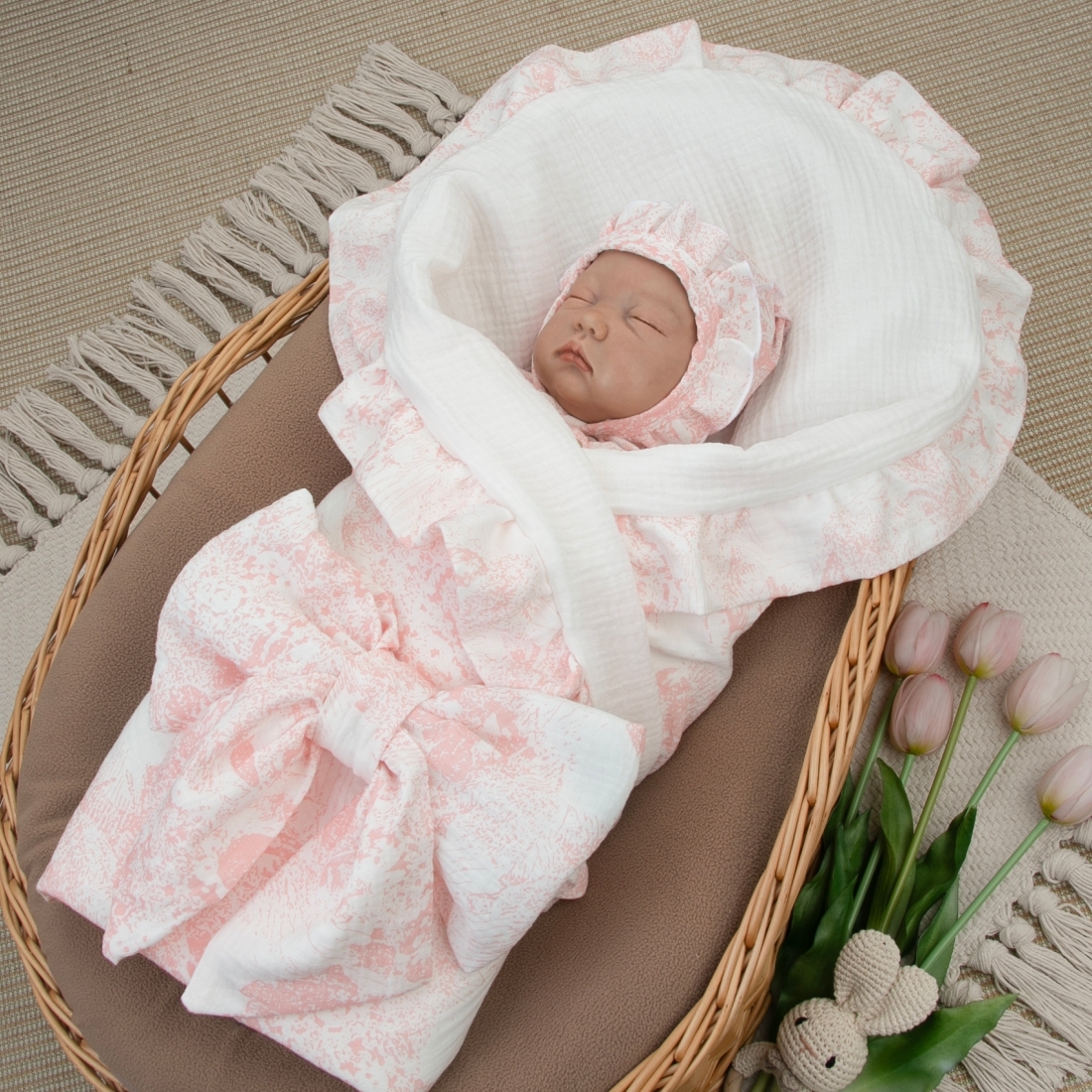 Комплект на выписку 4 предмета "Муслин Рюша".