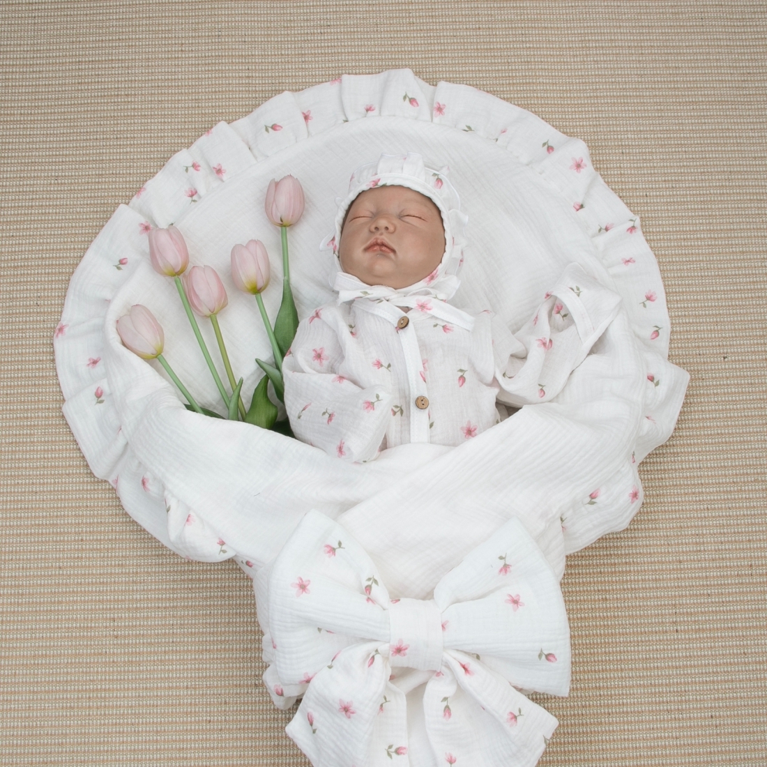 Комплект на выписку 4 предмета "Муслин Рюша".
