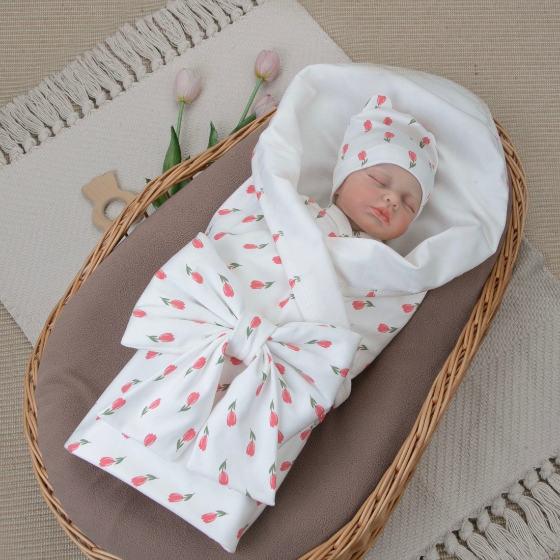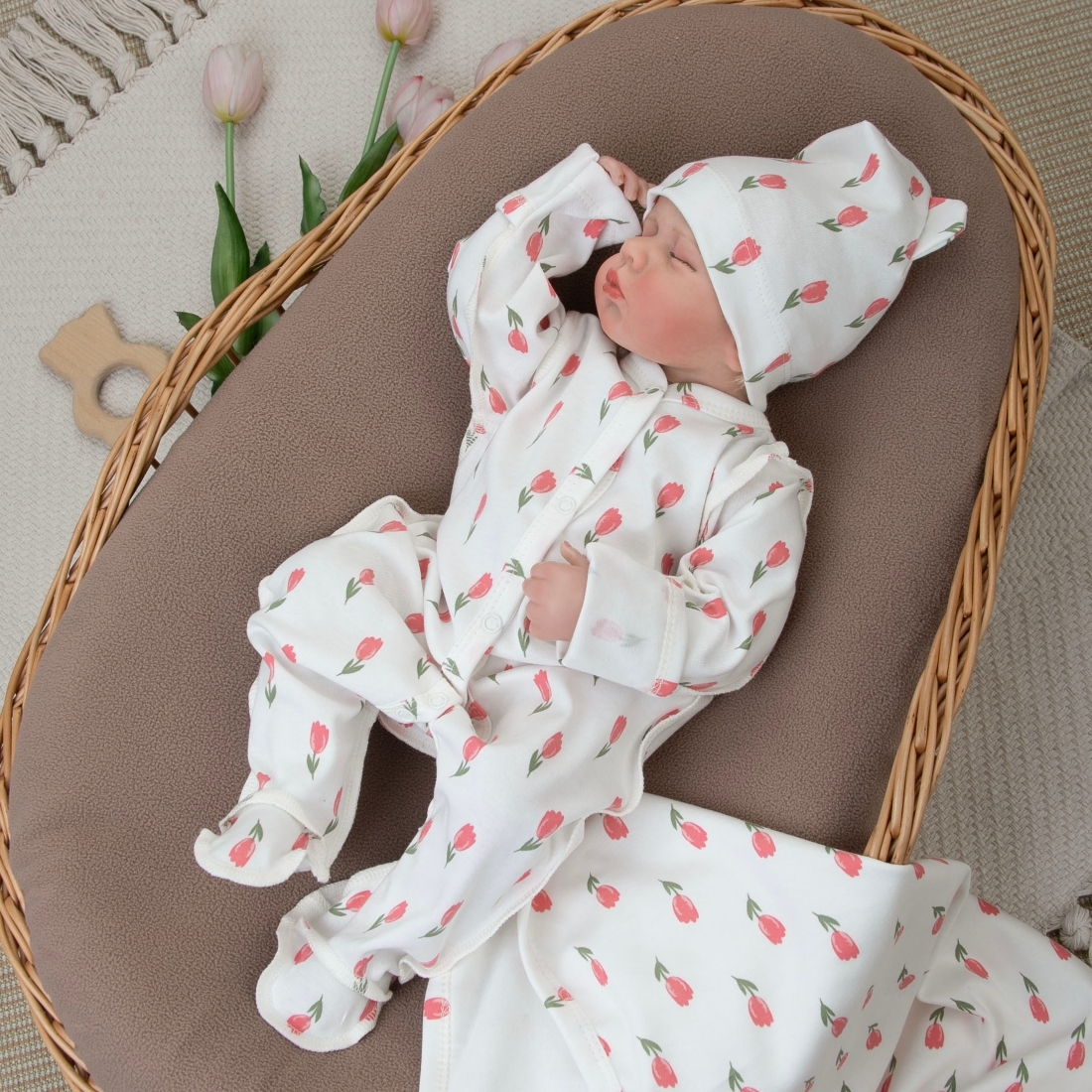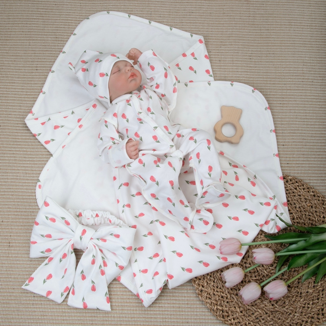 Универсальный комплект на выписку из 4 предметов - "Тюльпанчики.Плед"