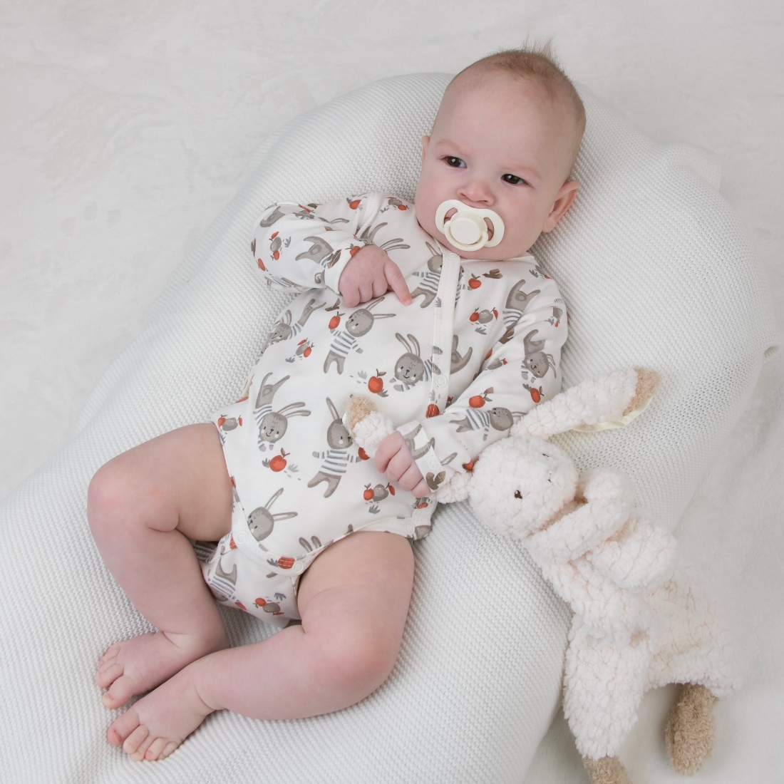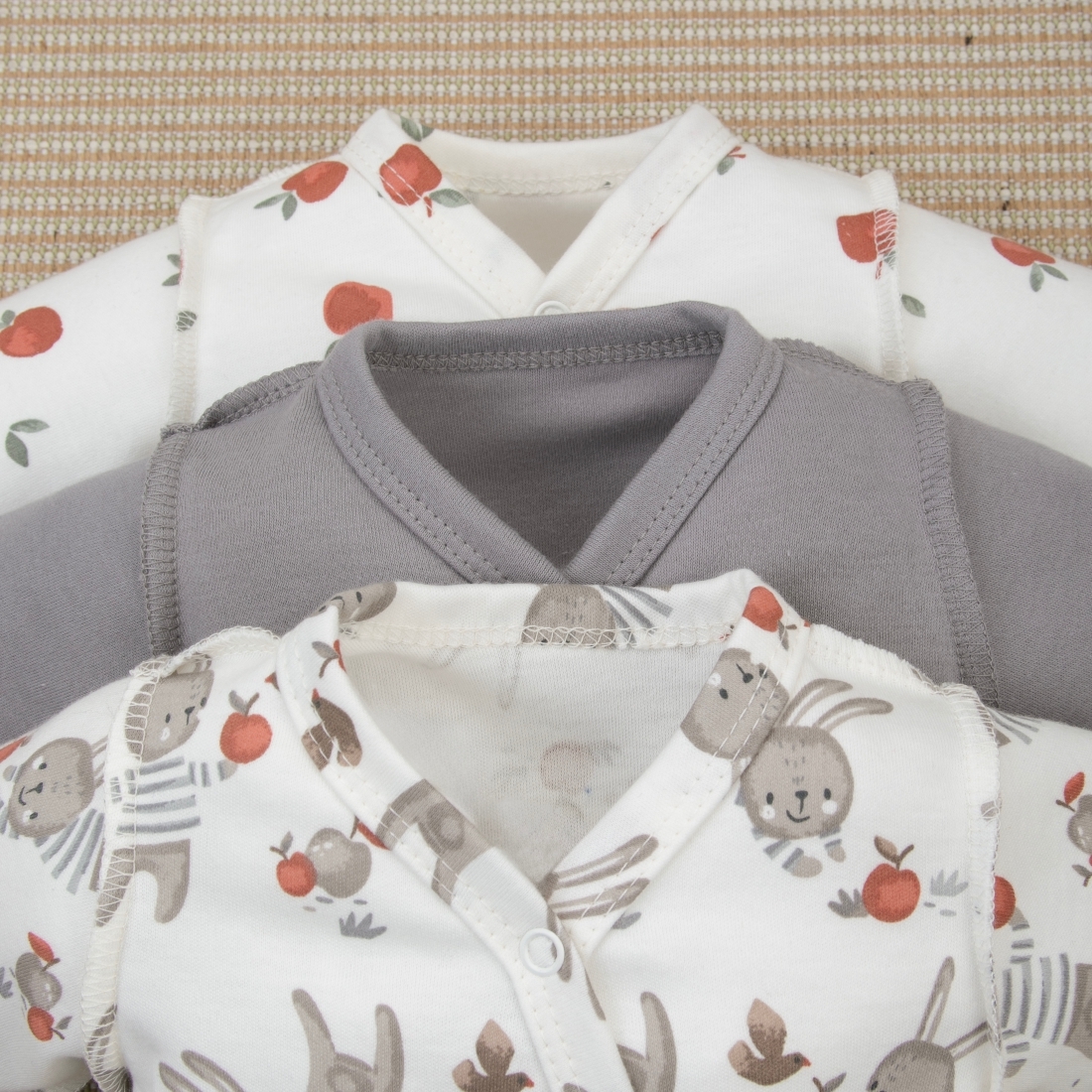 Рукав от линии ворота исключает натирание в проблемной плечевой-подмышечной зоне младенца.