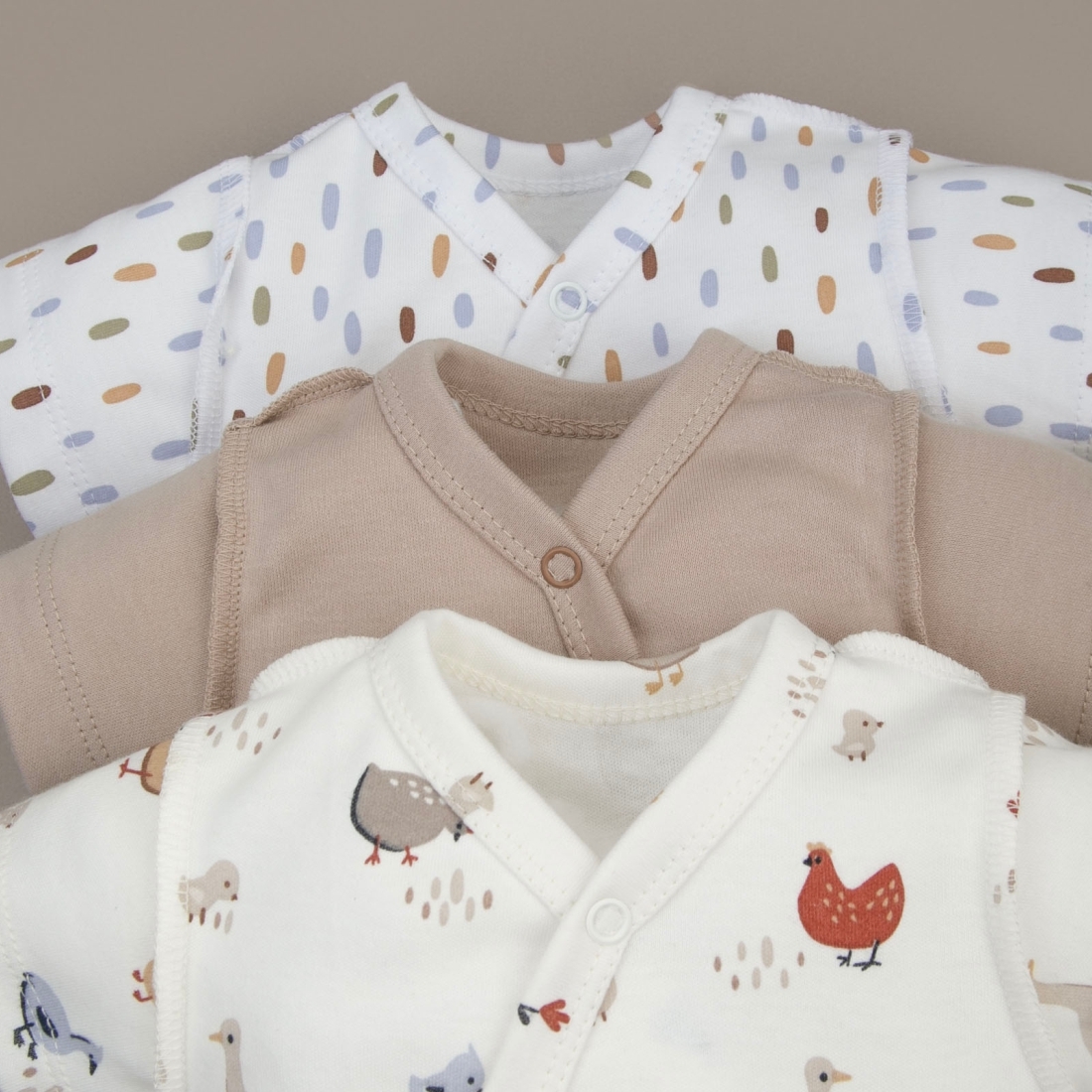 Рукав от линии ворота исключает натирание в проблемной плечевой-подмышечной зоне младенца.