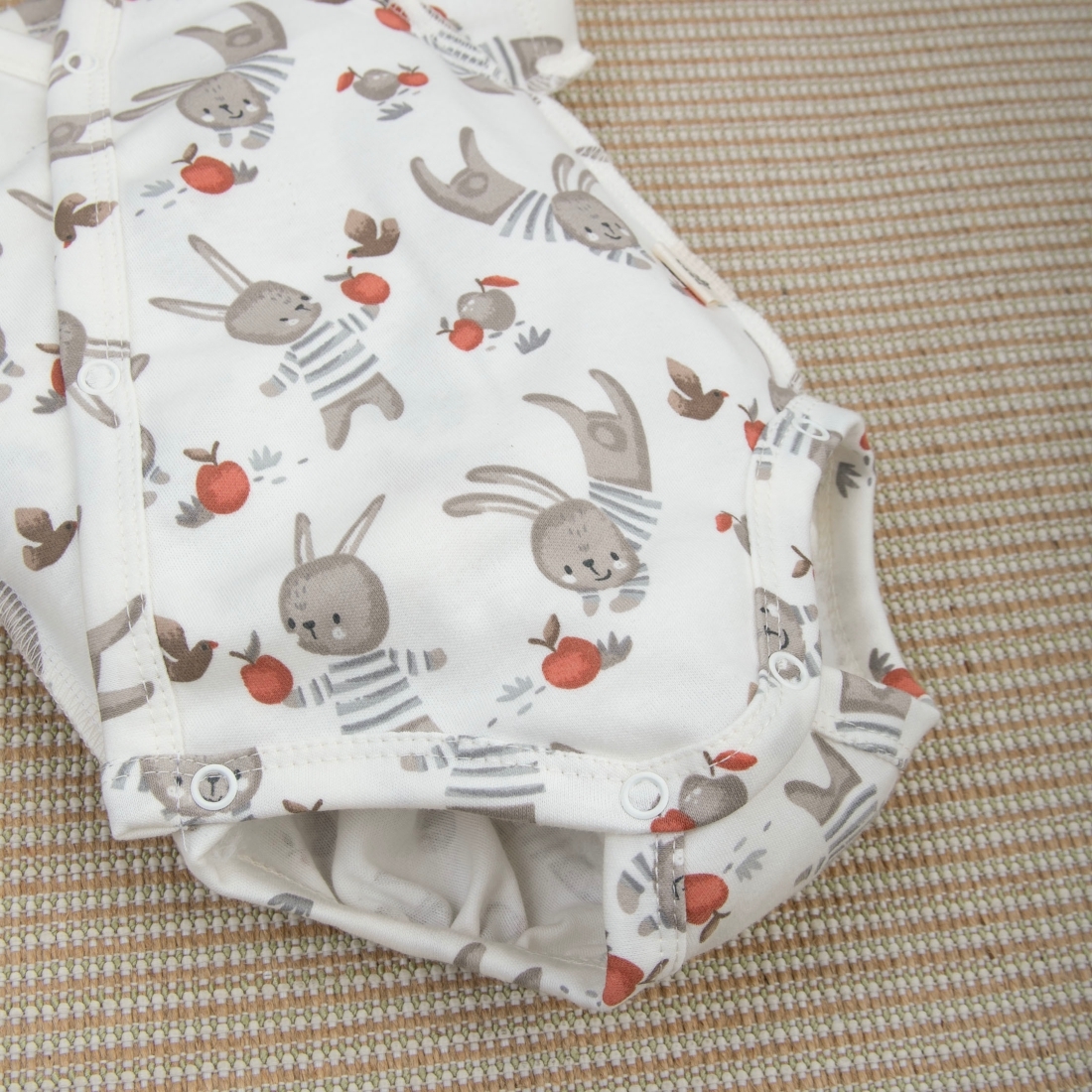 Рукав от линии ворота исключает натирание в проблемной плечевой-подмышечной зоне младенца.