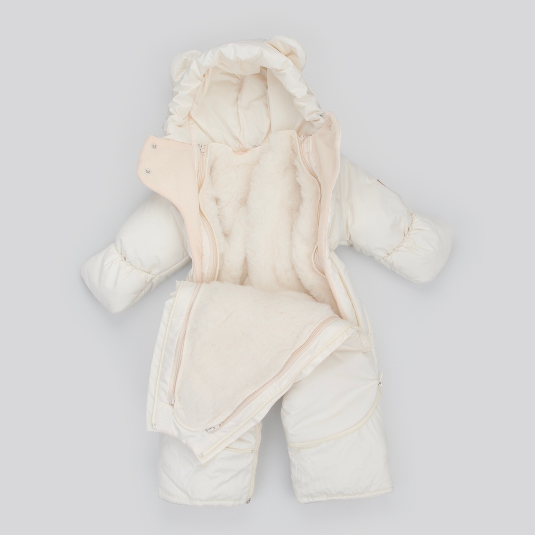 Меховая подстежка у комбинезона полностью отстегивается и комбинезон становится демисезонным или зимним по желанию и погоде.