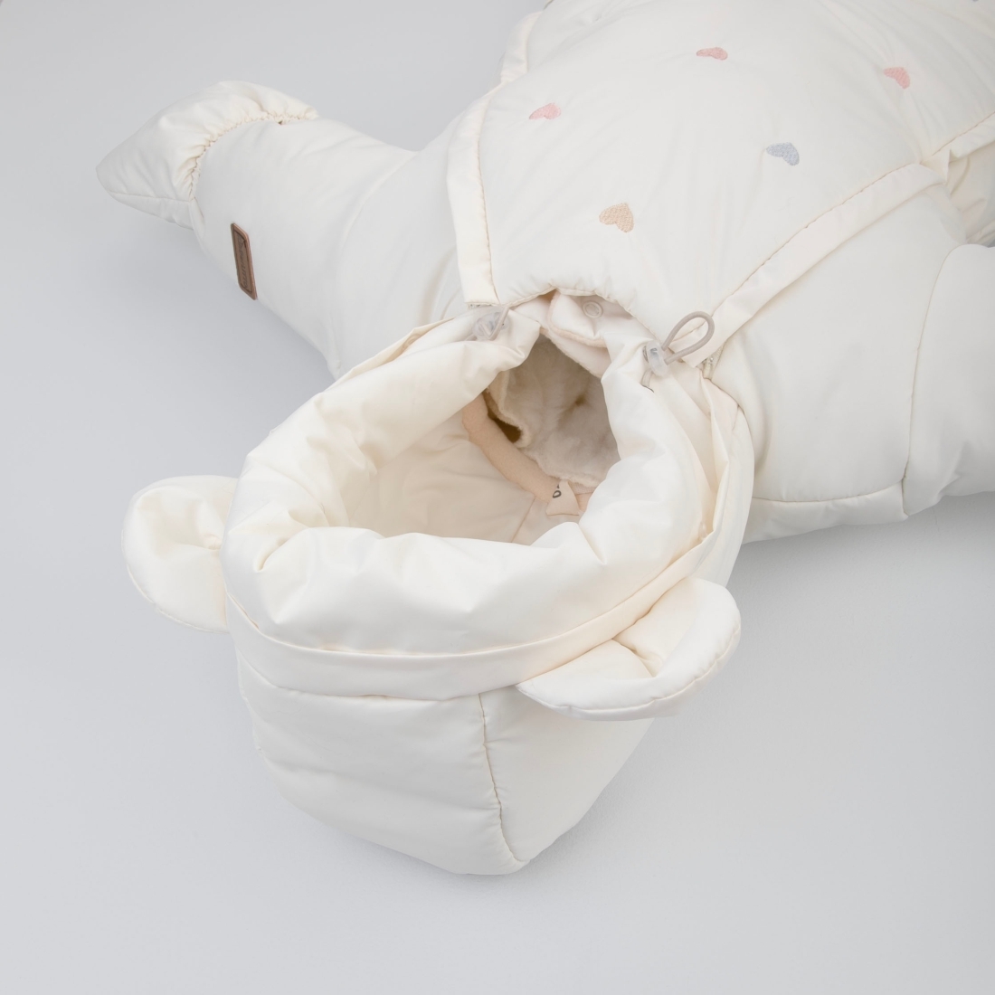 2. закрытые (застегнутые на молнии) штанины для подросшего грудничка,