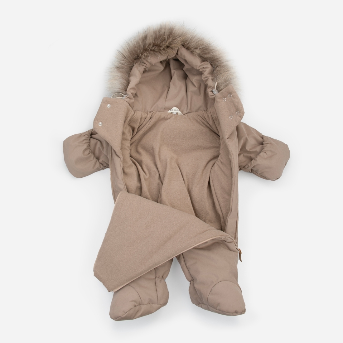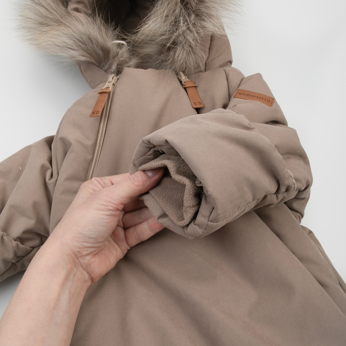 Зимний комбинезон «Новый Дивини-1» с отстегивающейся опушкой на капюшоне и с отворотами на рукавичках.