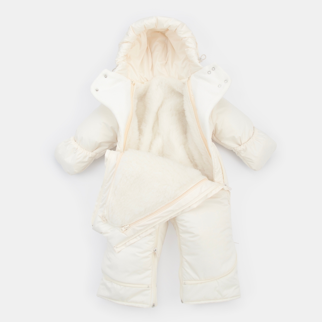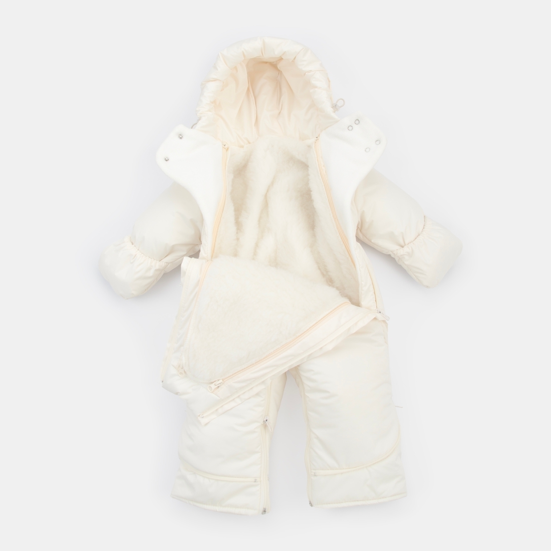 Меховая подстежка у комбинезона полностью отстегивается и комбинезон становится демисезонным или зимним по желанию и погоде.