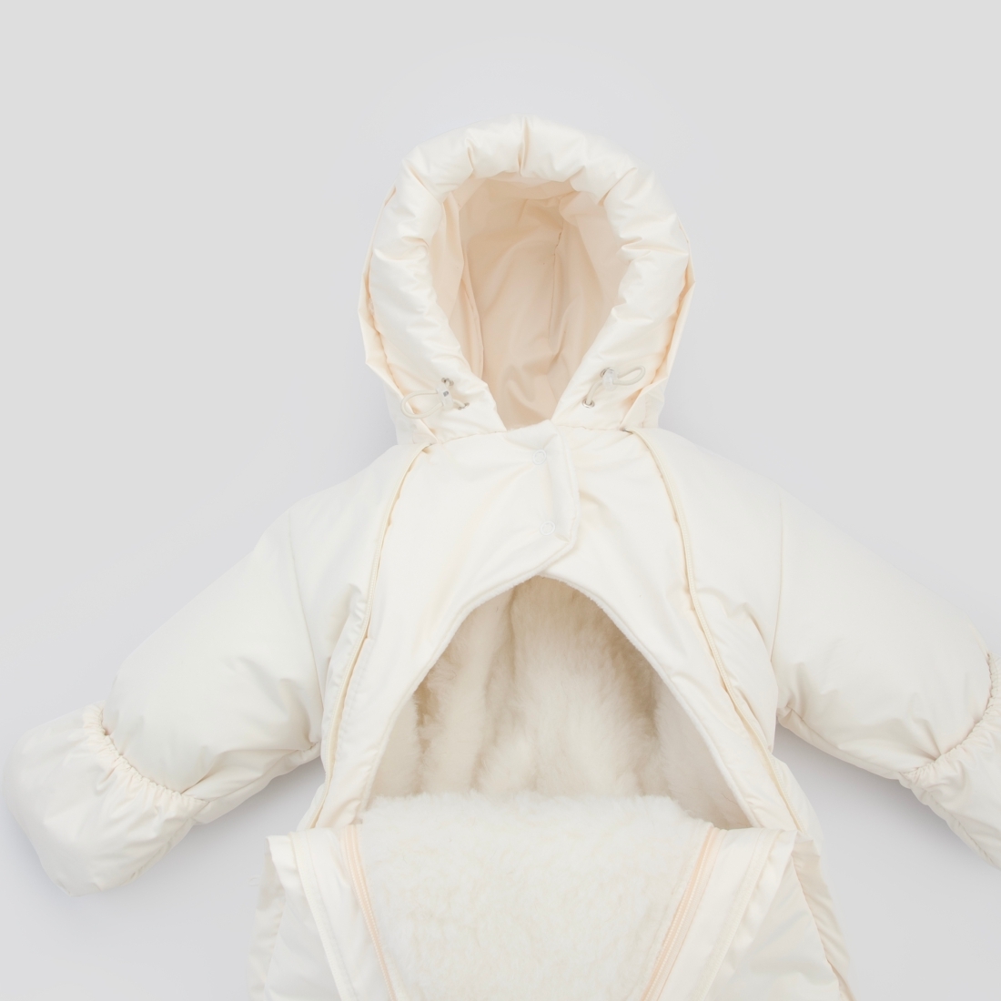 Две молнии по бокам помогут Вам легко одеть и снять комбинезон с малыша.