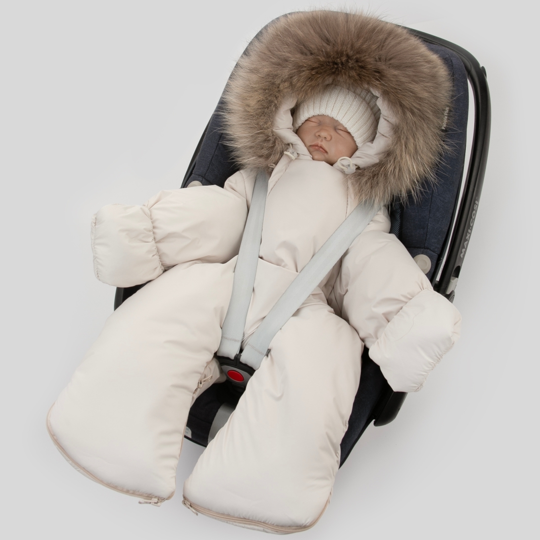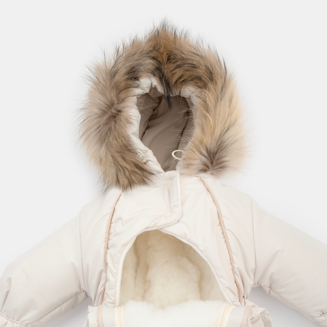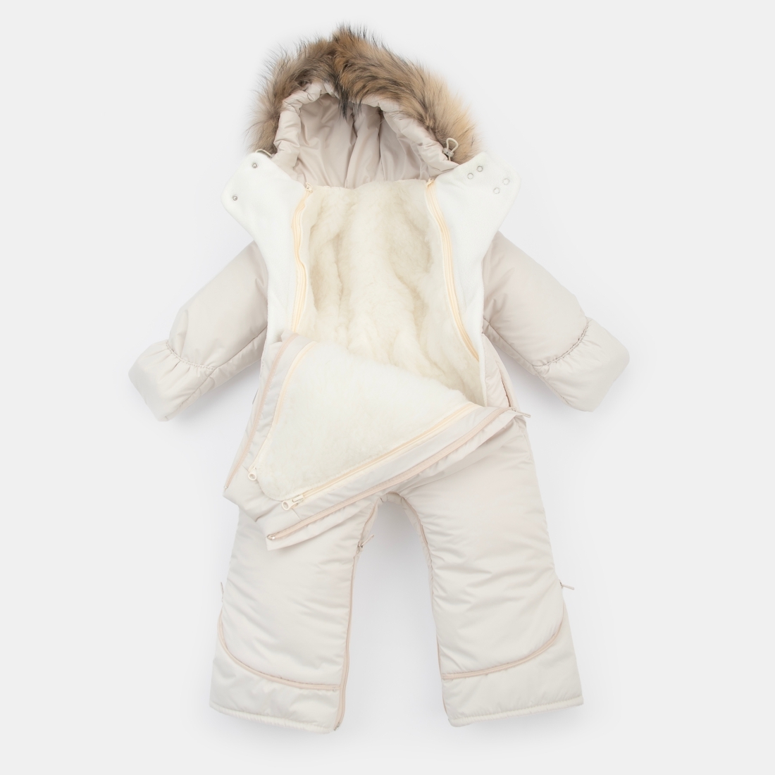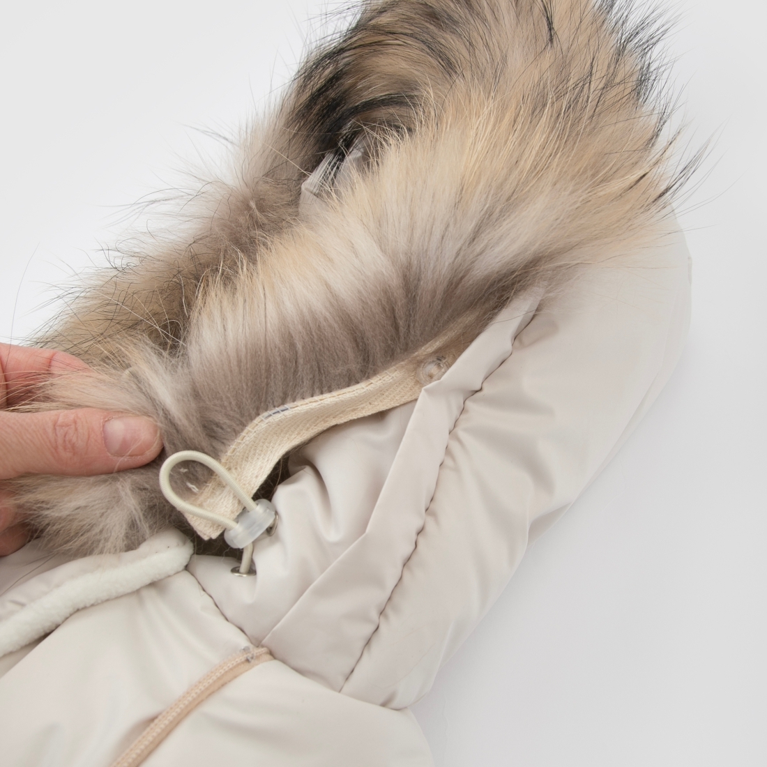 Комбинезон - трансформер "Фантазия", с отстегивающейся опушкой на капюшоне и отворотами на рукавах.