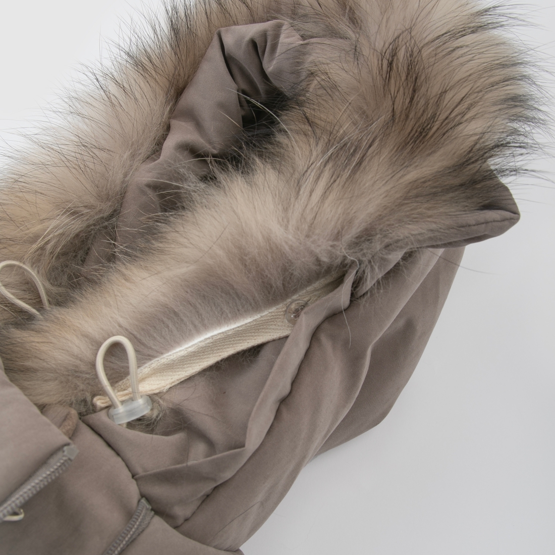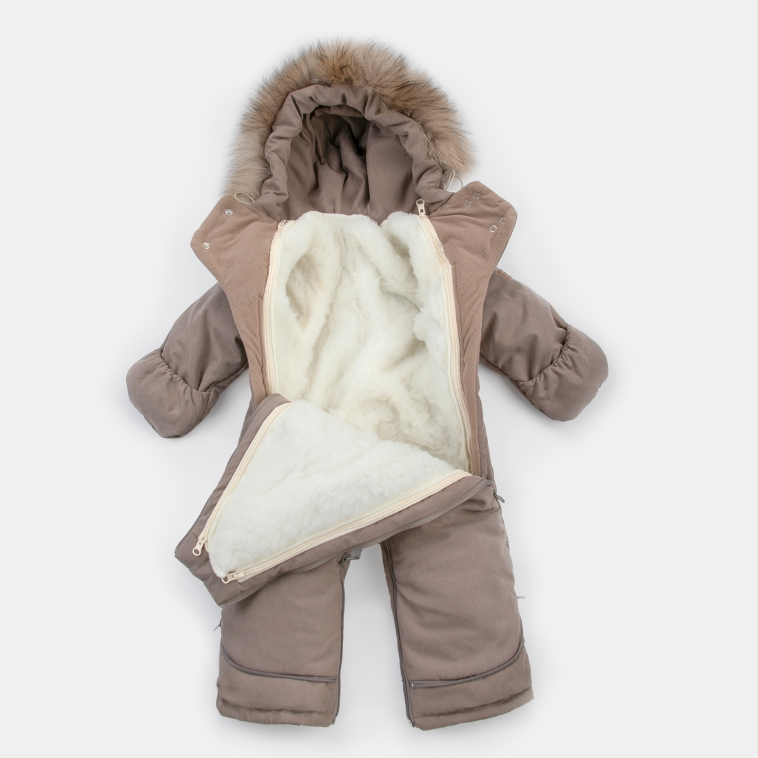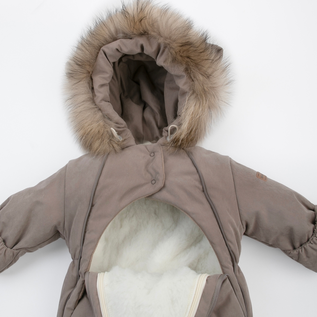 омбинезон - трансформер "Миш", с отстегивающейся опушкой на капюшоне и отворотами на рукавах.