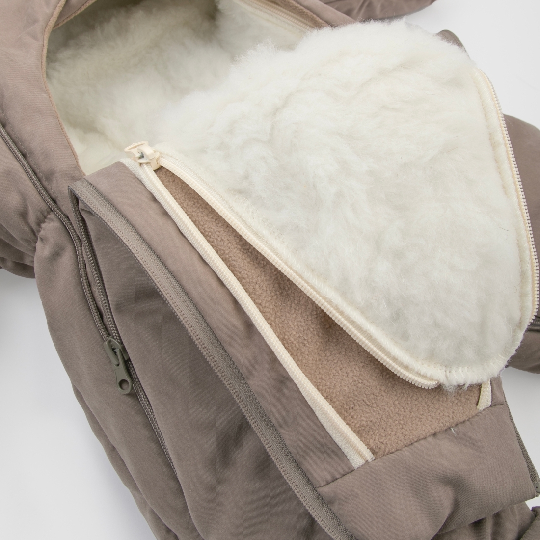 Меховая подстежка у комбинезона полностью отстегивается и комбинезон становится демисезонным или зимним по желанию и погоде.