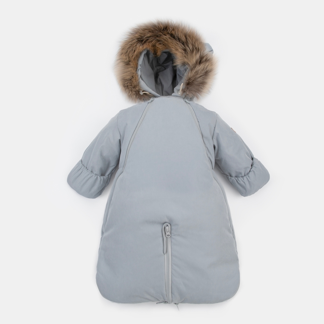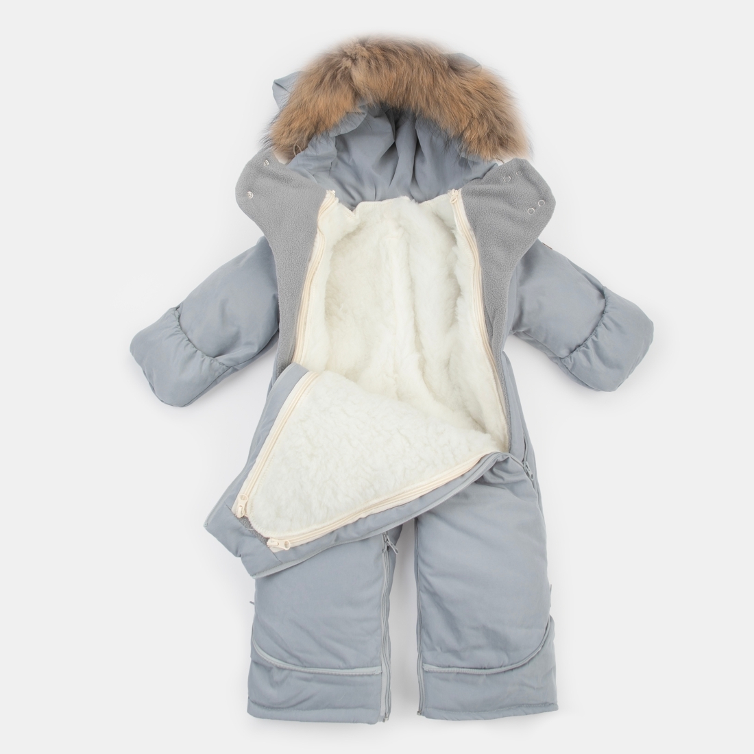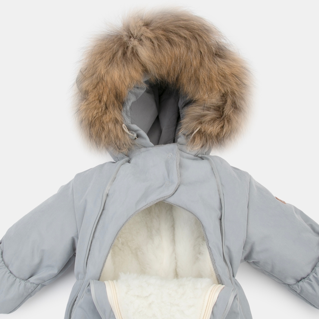 омбинезон - трансформер "Миш", с отстегивающейся опушкой на капюшоне, вышивкой на грудке и отворотами на рукавах.