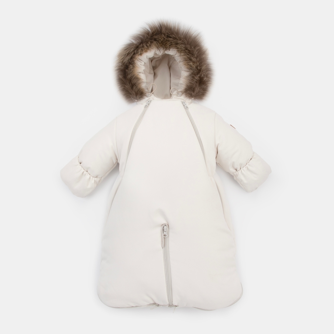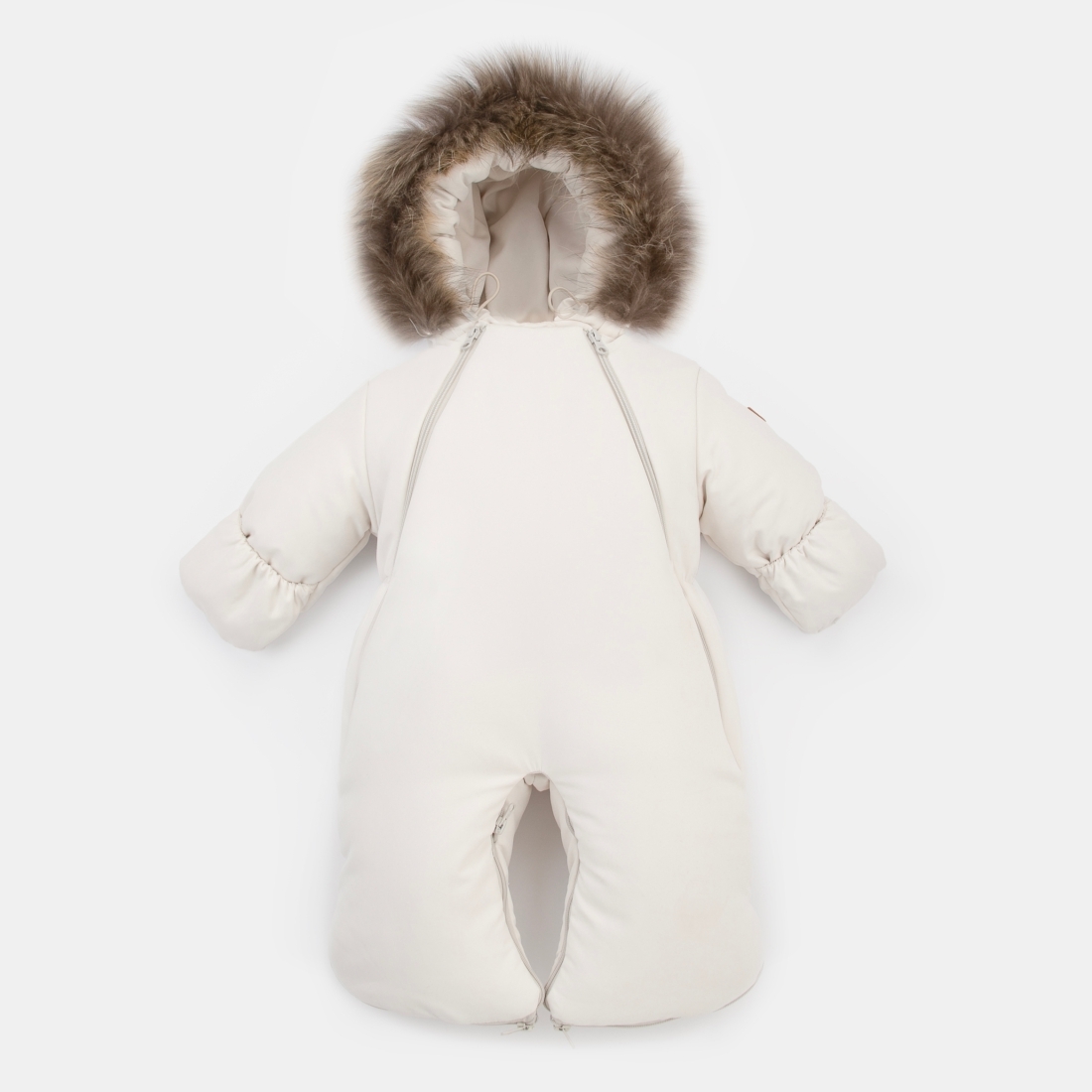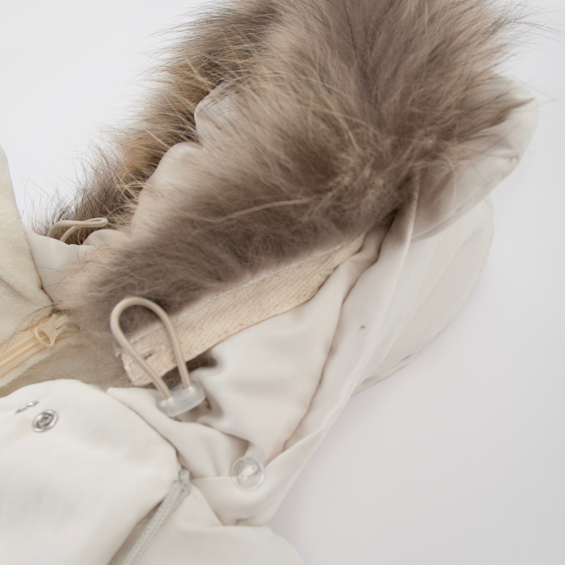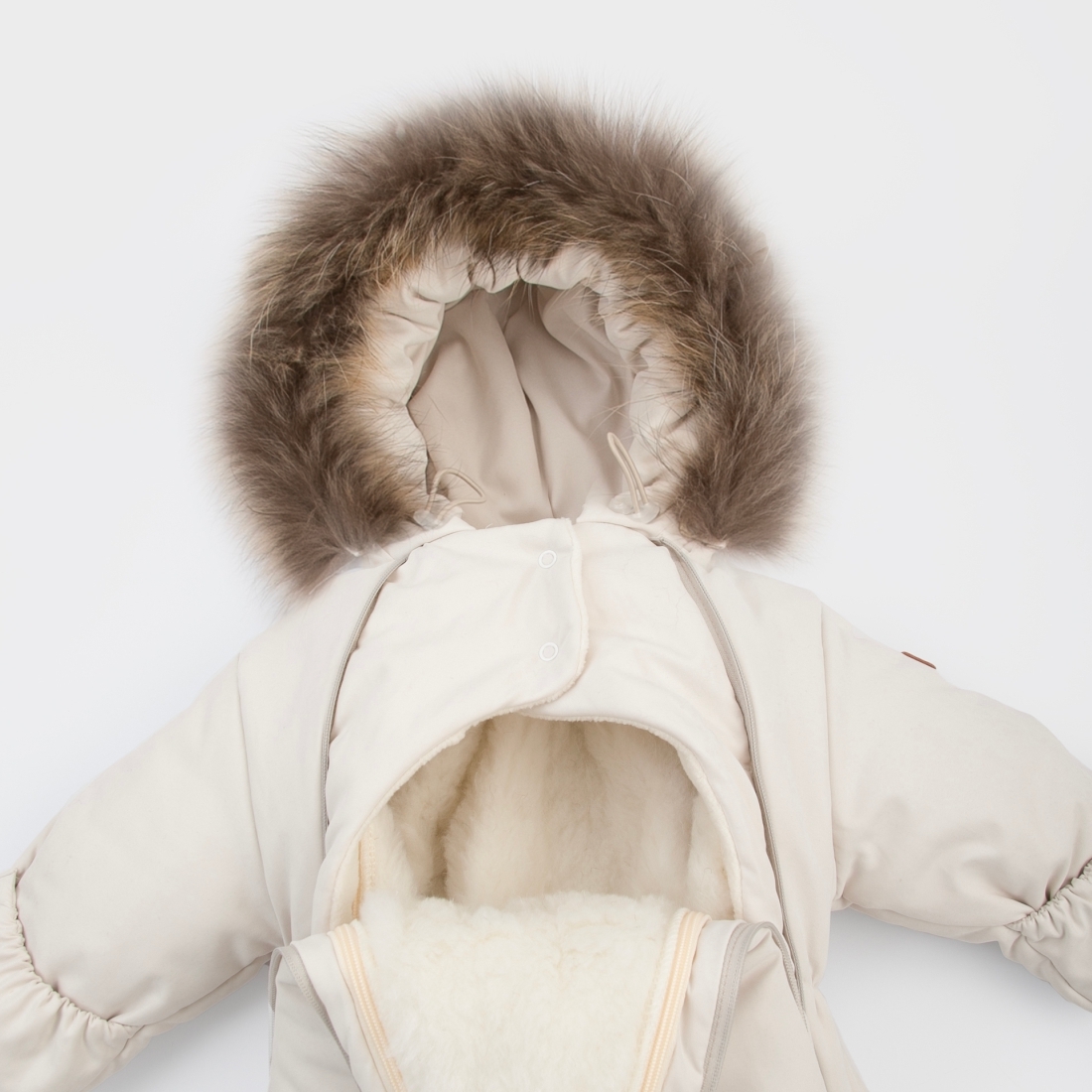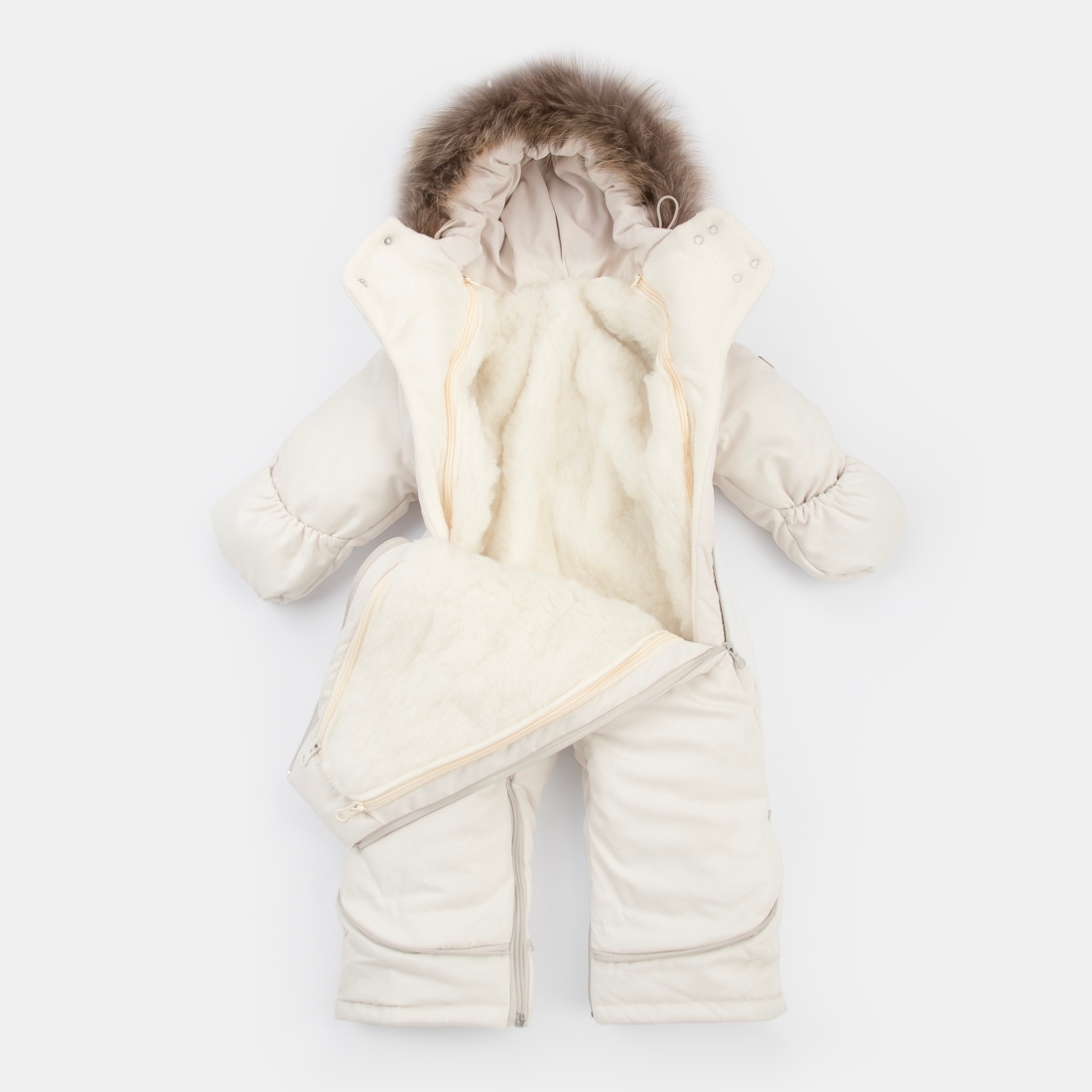 омбинезон - трансформер "Миш", с отстегивающейся опушкой на капюшоне, вышивкой на грудке и отворотами на рукавах.