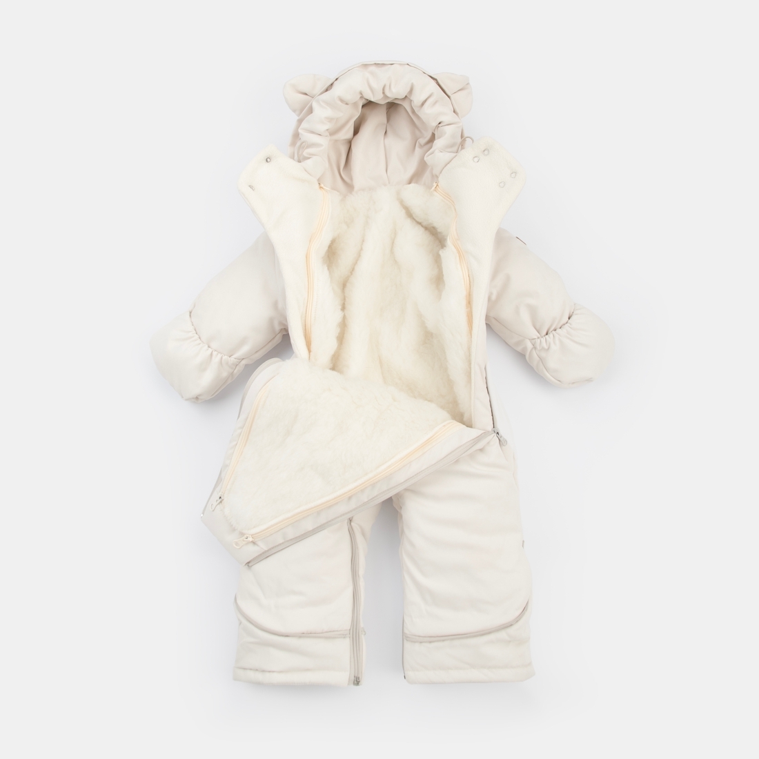 Две молнии по бокам помогут Вам легко одеть и снять комбинезон с малыша.