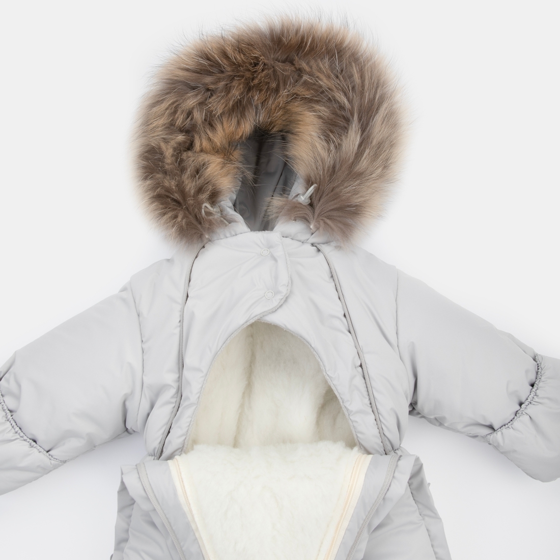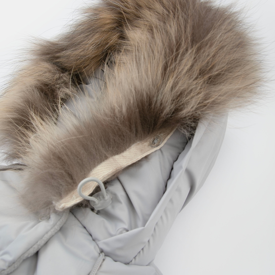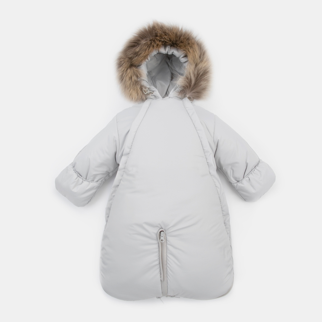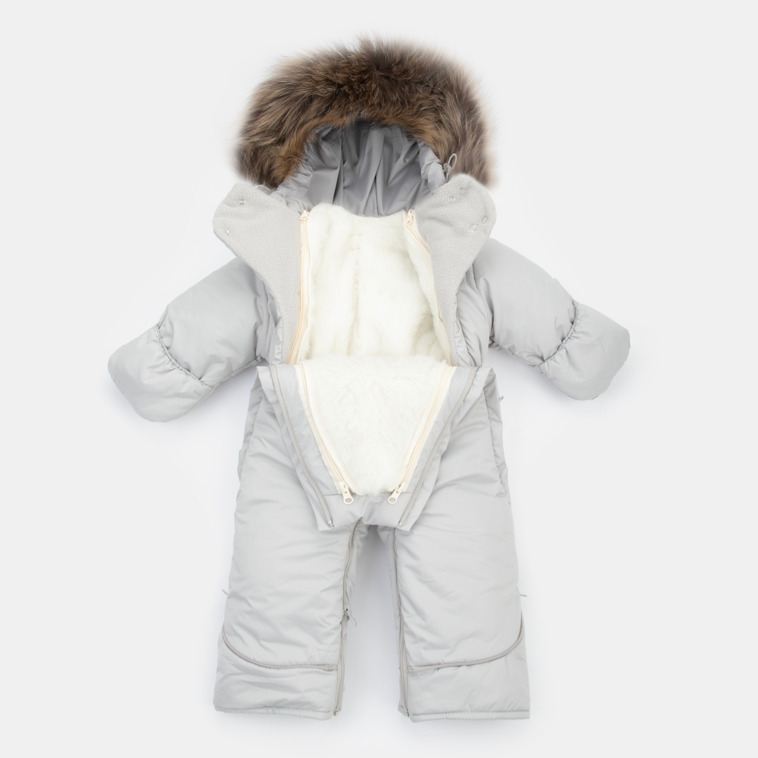 Комбинезон - трансформер "Фантазия", с отстегивающейся опушкой на капюшоне и отворотами на рукавах.