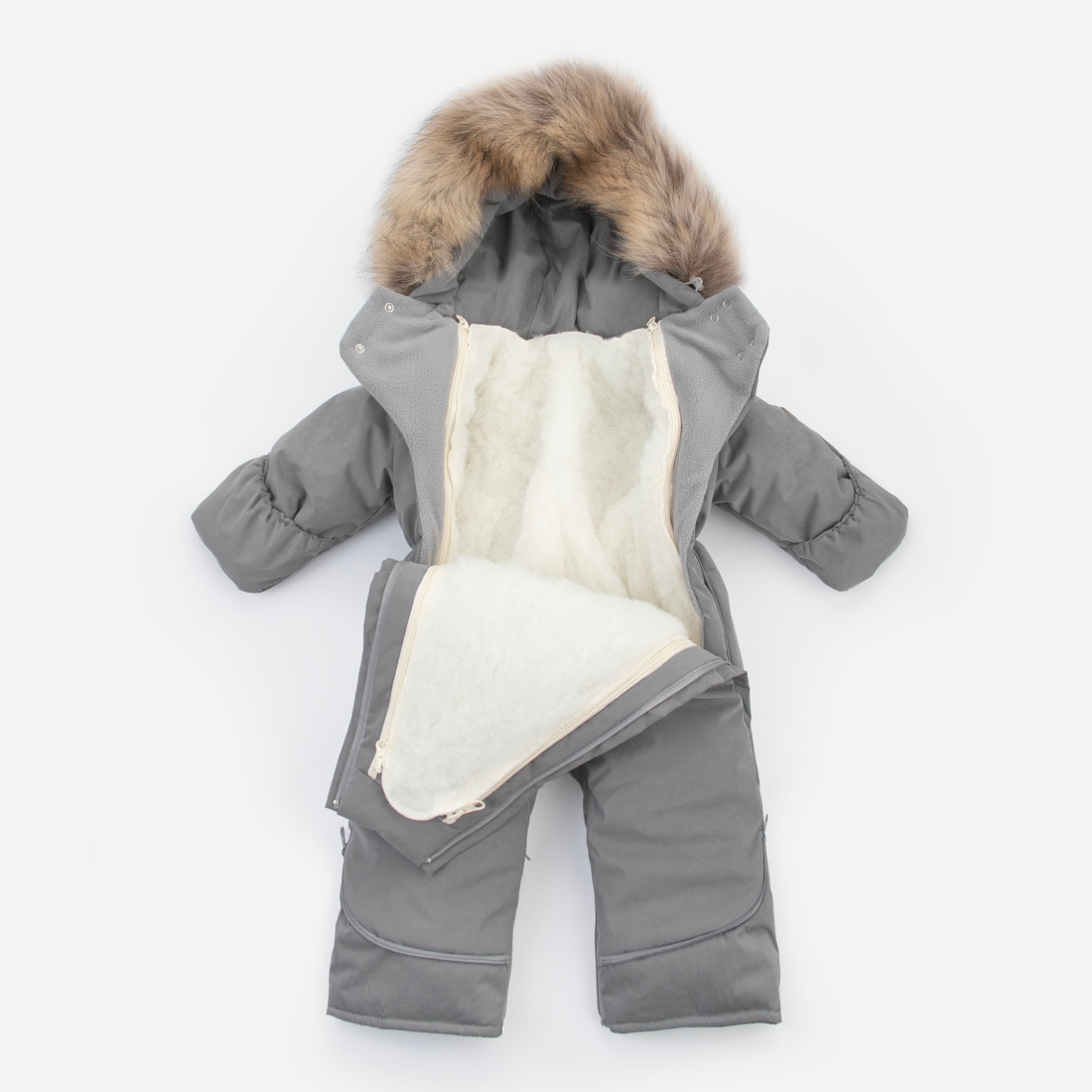 Комбинезон - трансформер "Дивини", с отстегивающейся опушкой на капюшоне и отворотами на рукавах