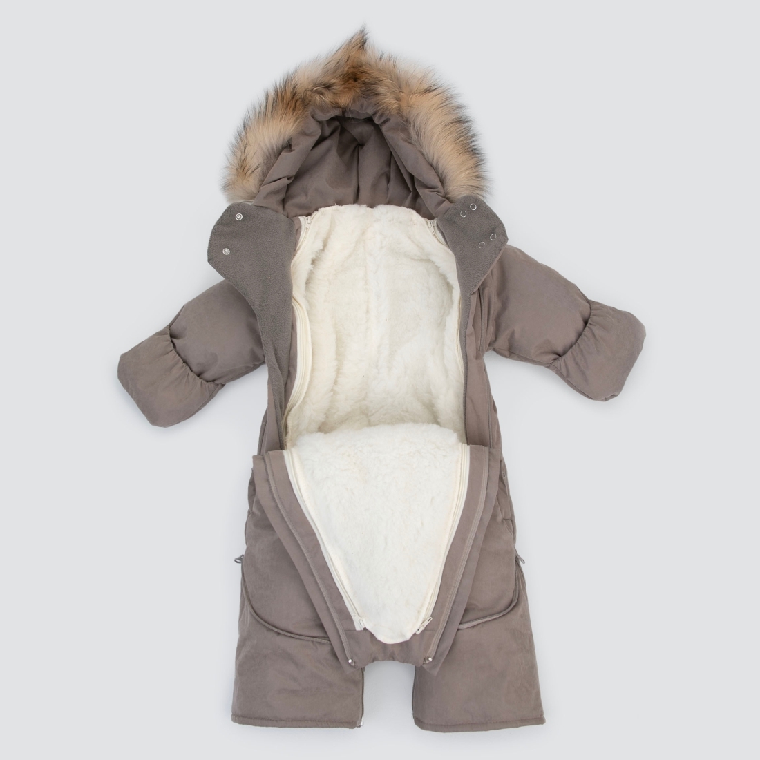 Меховая подстежка у комбинезона полностью отстегивается и комбинезон становится демисезонным или зимним по желанию и погоде.