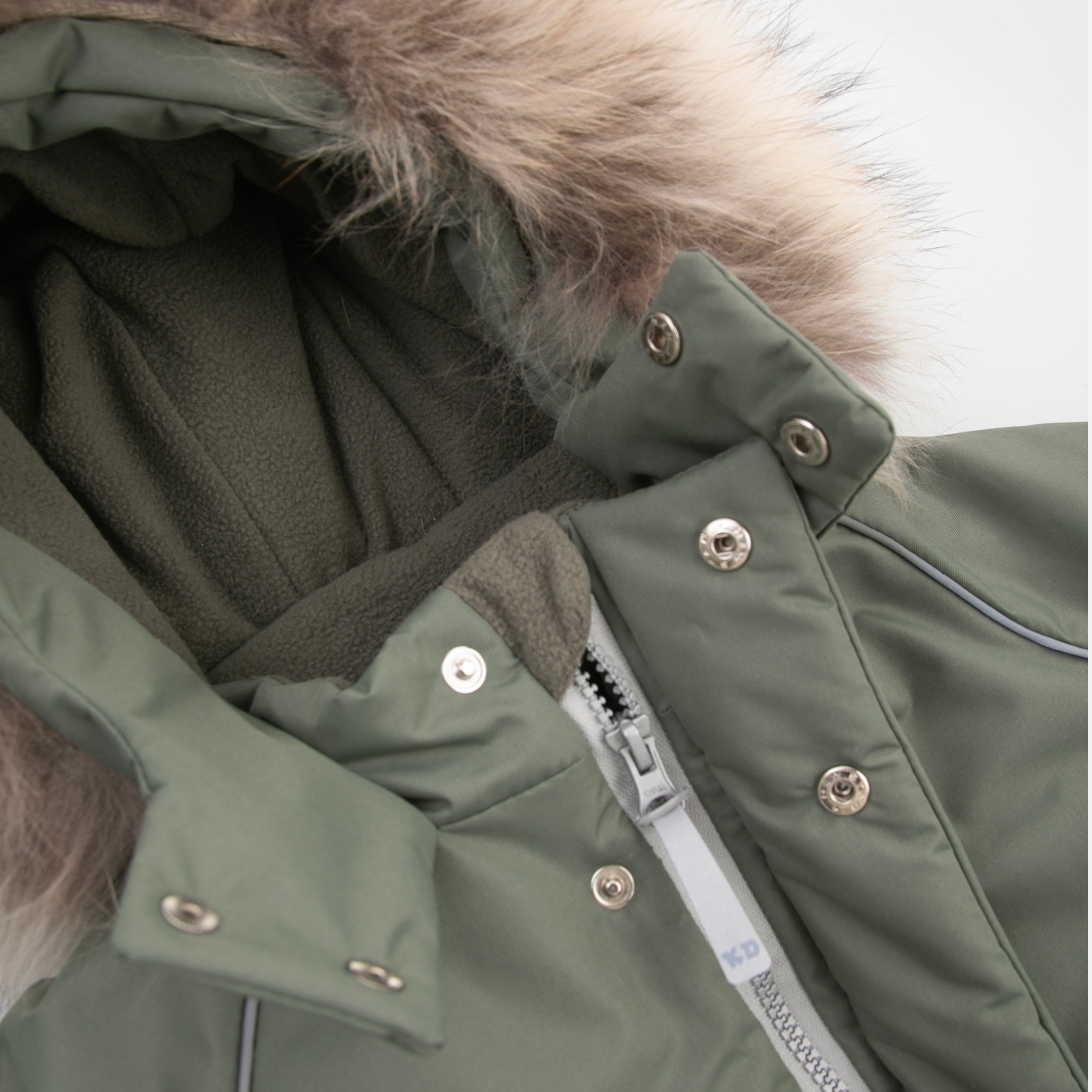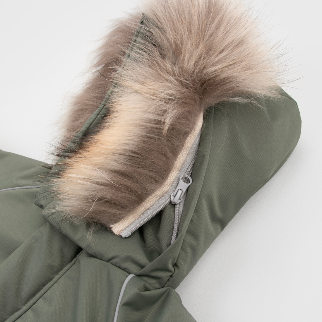 Капюшон с отстегивающейся опушкой на молнии из натурального меха.