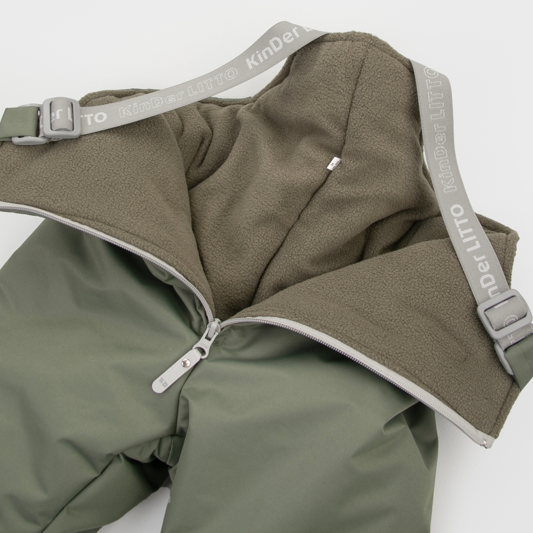 Застежка молния, регулируемы подтяжки на мягкой резинке.