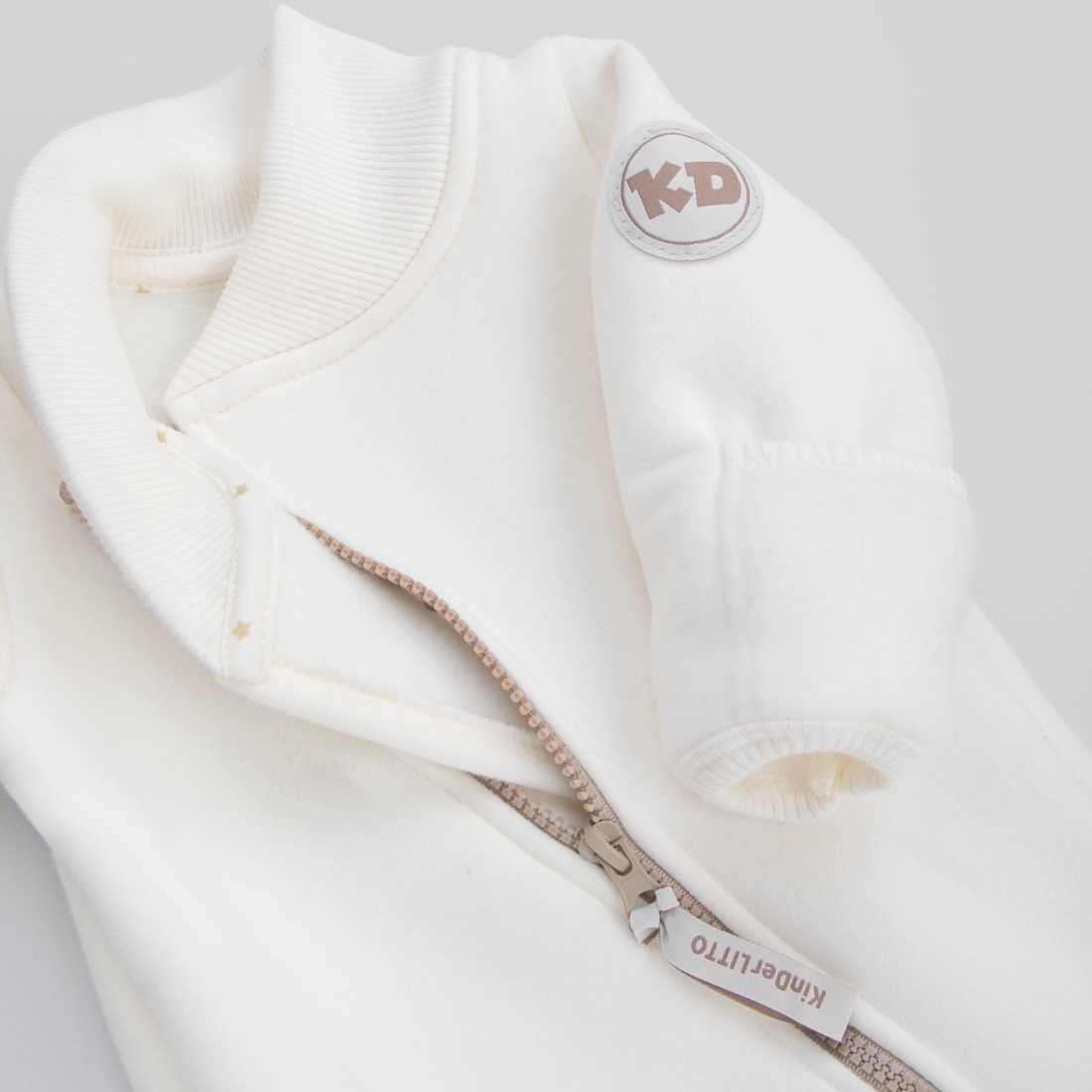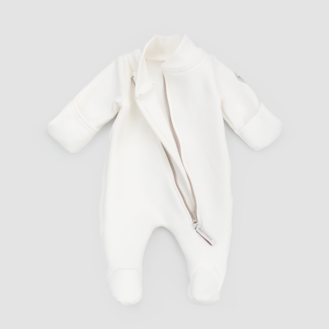 Косая молния на всю длину, делает процесс одевания малыша простым и удобным.