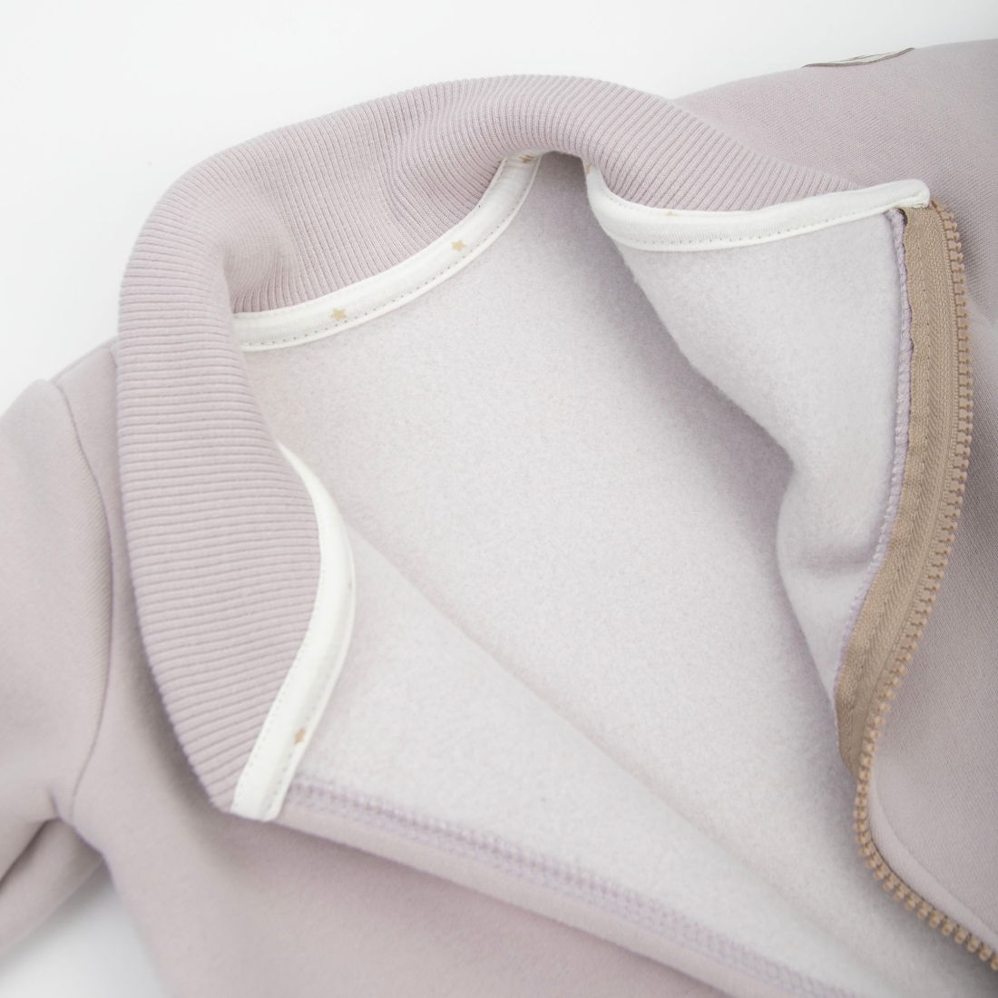 Косая молния на всю длину, делает процесс одевания малыша простым и удобным.