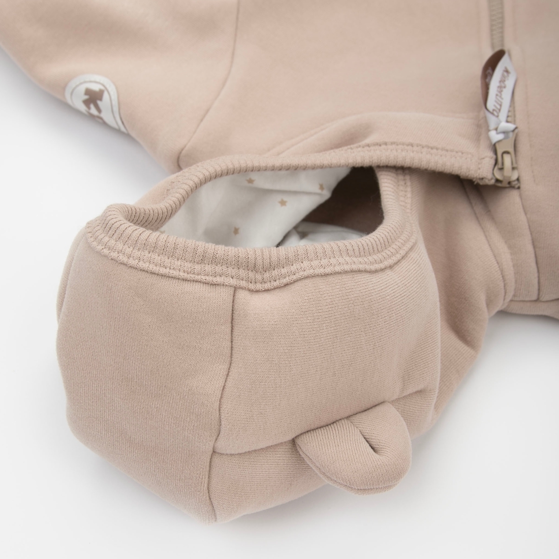 Отвороты на рукавах позволят спрятать ручки от ветра. Ножки закрыты